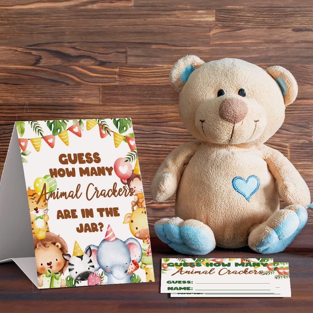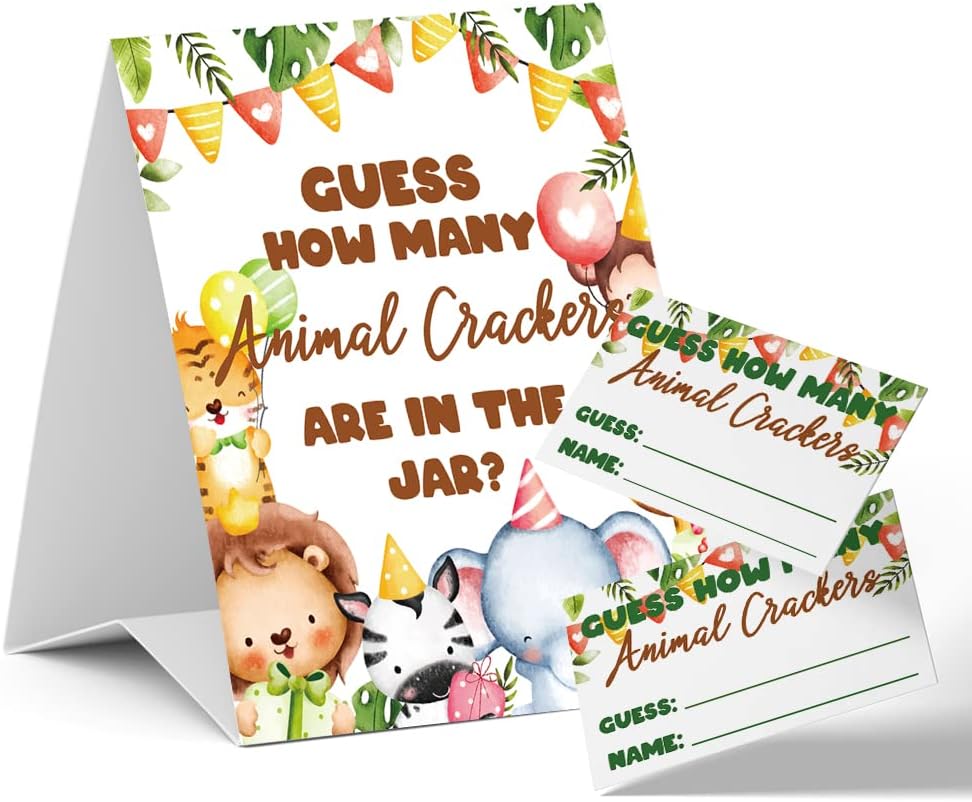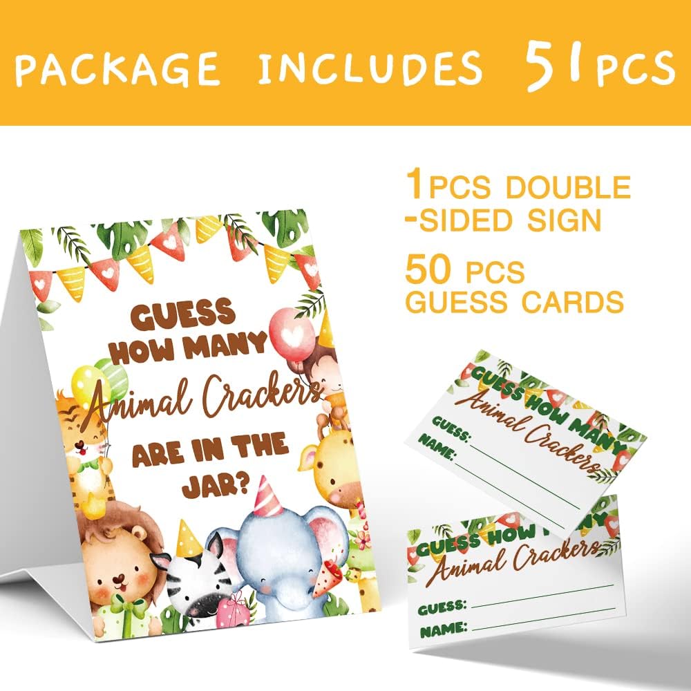 ألعاب استحمام الأطفال من Lovely Jungle Animals تخمين كم عدد الحيوانات المفرقعات، للجنسين (علامة واحدة و50 بطاقة تخمين)، زينة حمام الطفل، لعبة تخمين حمام الطفل - DLM322