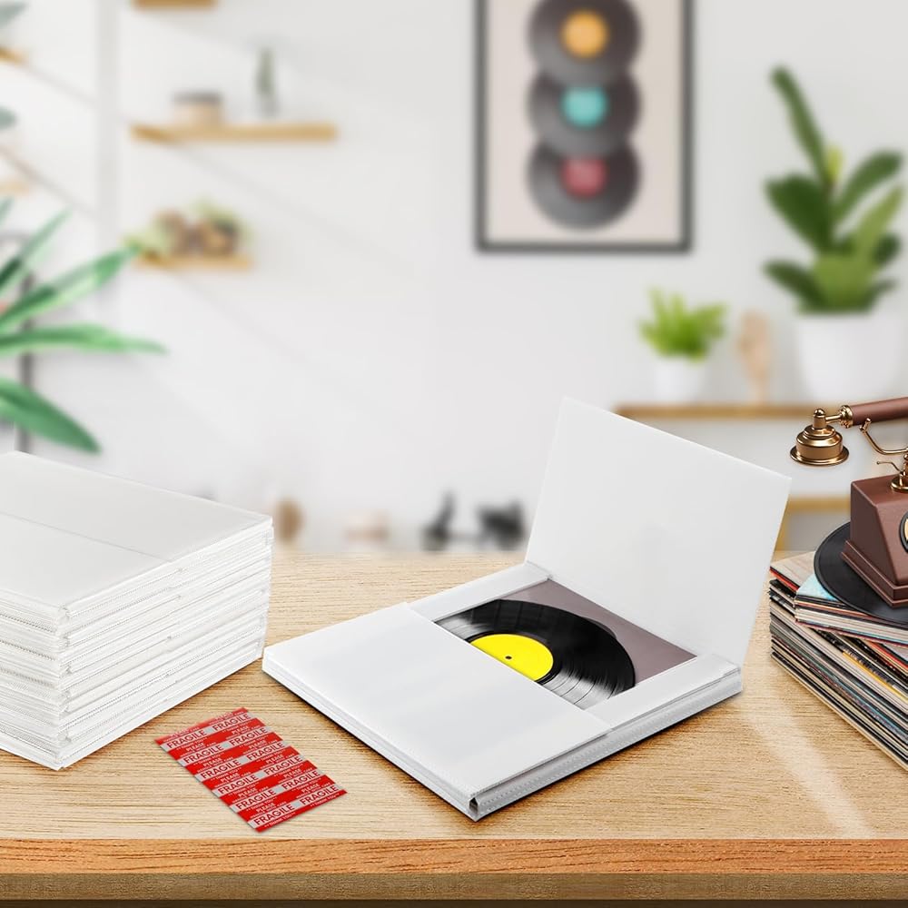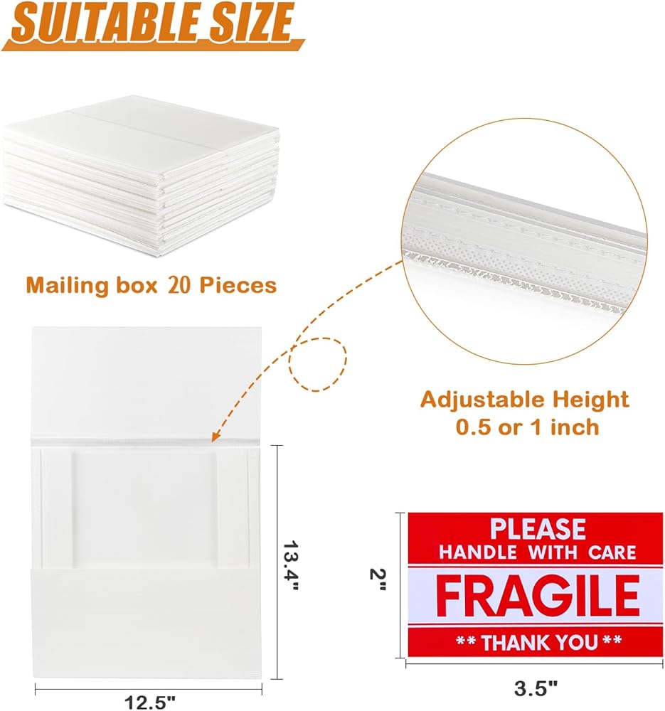 • [Ideal Vinyl Shipping Box]:Vinyl record box measures approximately 12.5 x 12.5 x 1 inches, can fit 12 x 12 inches vinyl, height can be adjusted as needed, set of 20, one can fit up to 5 pieces of vinyl.