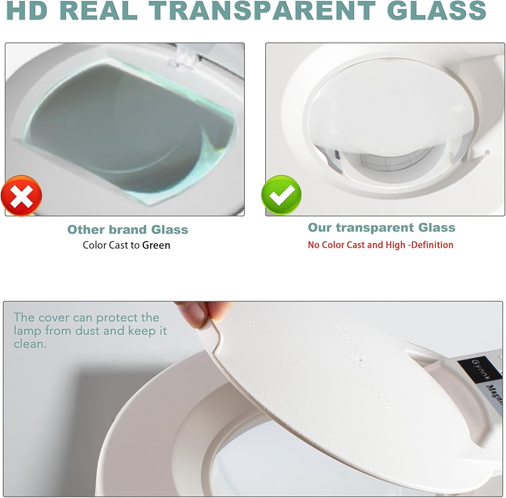 مصباح مكبر Gynnx مع زجاج بصري عالي الوضوح، يمكن تكبيره 10X. بعض المصابيح المكبرة الأخرى تستخدم الزجاج السماوي العادي، ذو الشفافية والوضوح المنخفض، مما يؤدي إلى اختلاف لون معين في اللون السماوي. يستخدم المصباح المكبر الخاص بنا الزجاج البصري الذي يتمتع بشفافية ووضوح عاليين، دون أي اختلاف في اللون وله تأثير تكبير جيد لاستخدامك اليومي.