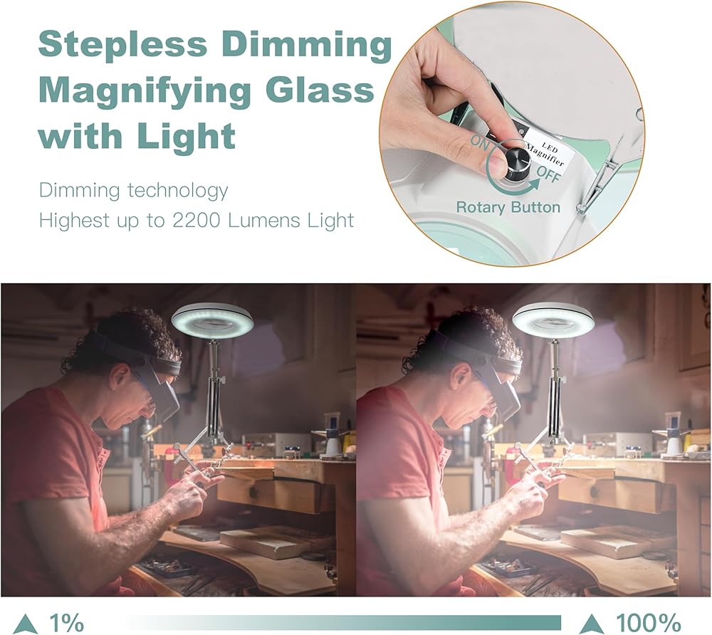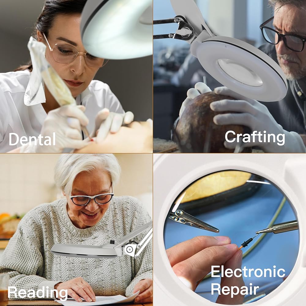 يمكن استخدام هذا المصباح المكبر في مشاهدة الأجزاء الصناعية الدقيقة، كإضاءة التجميل، والقراءة، ومراقبة المجوهرات، وإصلاح الهاتف المحمول، والنحت الحرفي، والحياكة، ولوحات الدوائر، واللحام. وأفضل ما في الأمر هو أنها لا تصبح ساخنة!