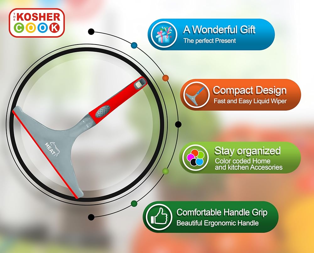 Keep your kitchen kosher while using the highest quality kitchen accessories with The Kosher Cook! Wipe away water and other liquids from all sorts of surfaces with absolute ease using our amazing squeegee. Perfect for counters, tables, and other surfaces whenever there's an accidental spill or you're giving it a nice clean. With just a few strokes, the moisture is easily whisked away and your surfaces are perfectly dry and free of moisture.
