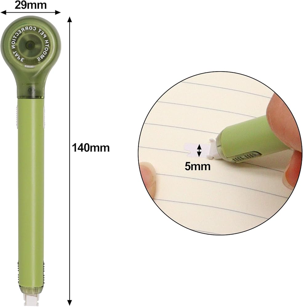 Evenly Apply - White out correction pen comes with a PET transparent plastic film tape, which writes smoothly on the paper and is not easy to break. The plastic film tape has a high degree of stretchability and is not easily broken even when pulled hard.