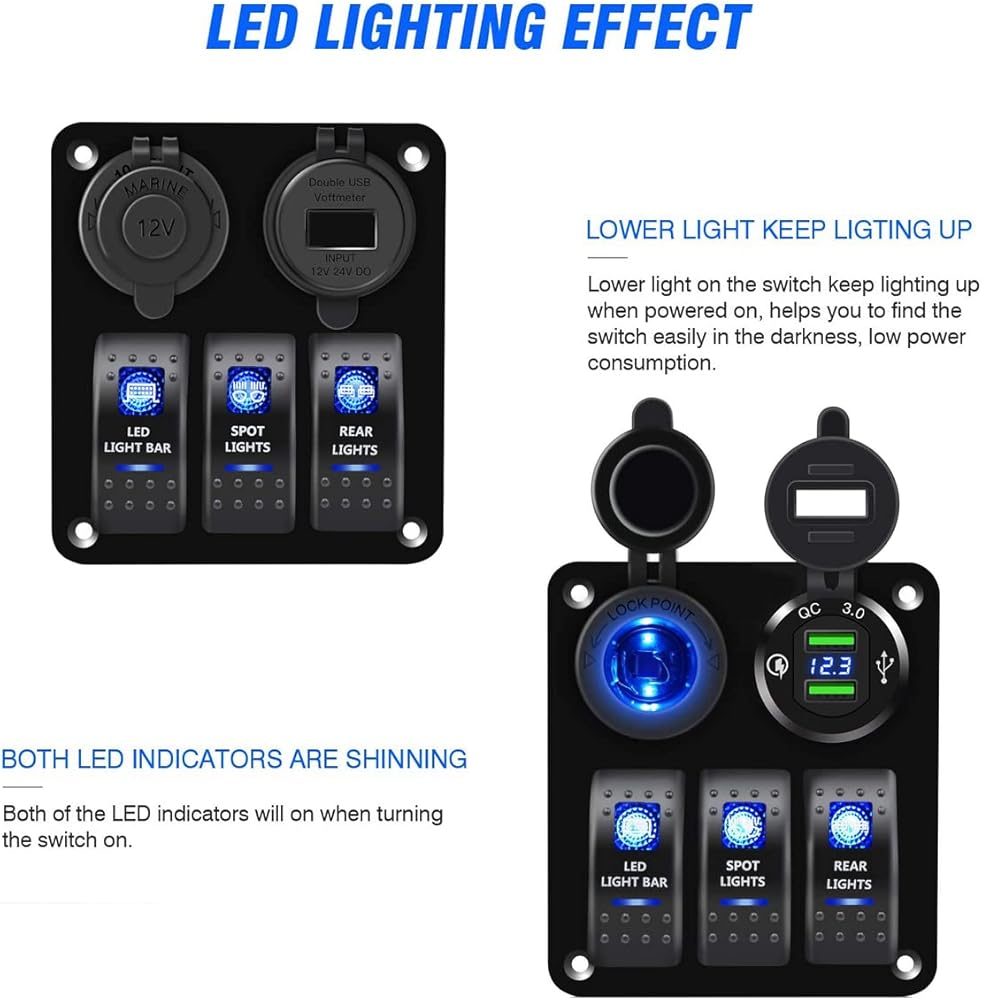 【ملحقات ترقية عالية الجودة】مقبس فتحة USB مزدوج QC 3.0 للشحن السريع، فولتميتر شاشة رقمية LED، لوح ألومنيوم مقاوم للماء؛ تصميم الإضاءة الخلفية، مفاتيح هزازة للتشغيل/الإيقاف، من السهل عليك العثور على المفتاح في الظلام.