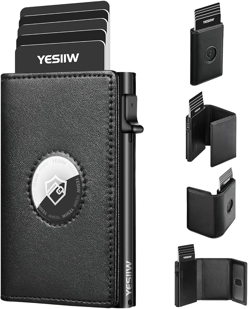 محفظة Airtag للرجال مع حامل بطاقة هوائية من الجلد المحبب العلوي، محفظة للرجال من Apple Air Tag، حامل بطاقة ائتمان منبثق مع جيب مخفي ثلاثي الطي، يحمل سعة 10 بطاقات، نافذة لبطاقة الهوية (أسود)