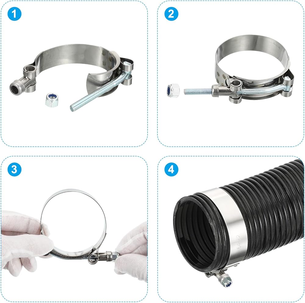 To use our T-Bolt Hose Clamps, simply position the clamp around the desired connection point, ensuring it is centered and aligned properly. Use a screwdriver to tighten the bolt until the clamp securely holds the components together. Adjust the tension as needed to achieve the desired fit. Ensure proper alignment and check for any signs of leakage or loosening regularly.