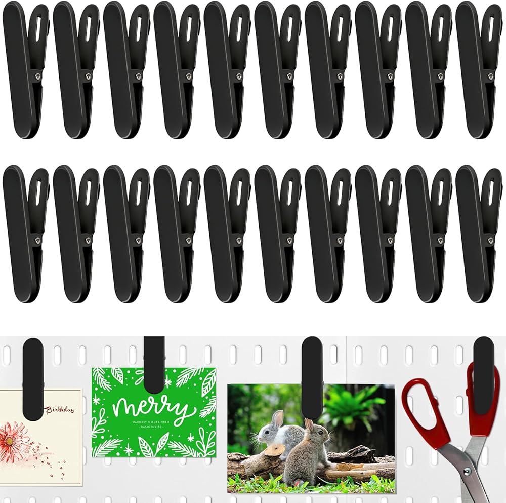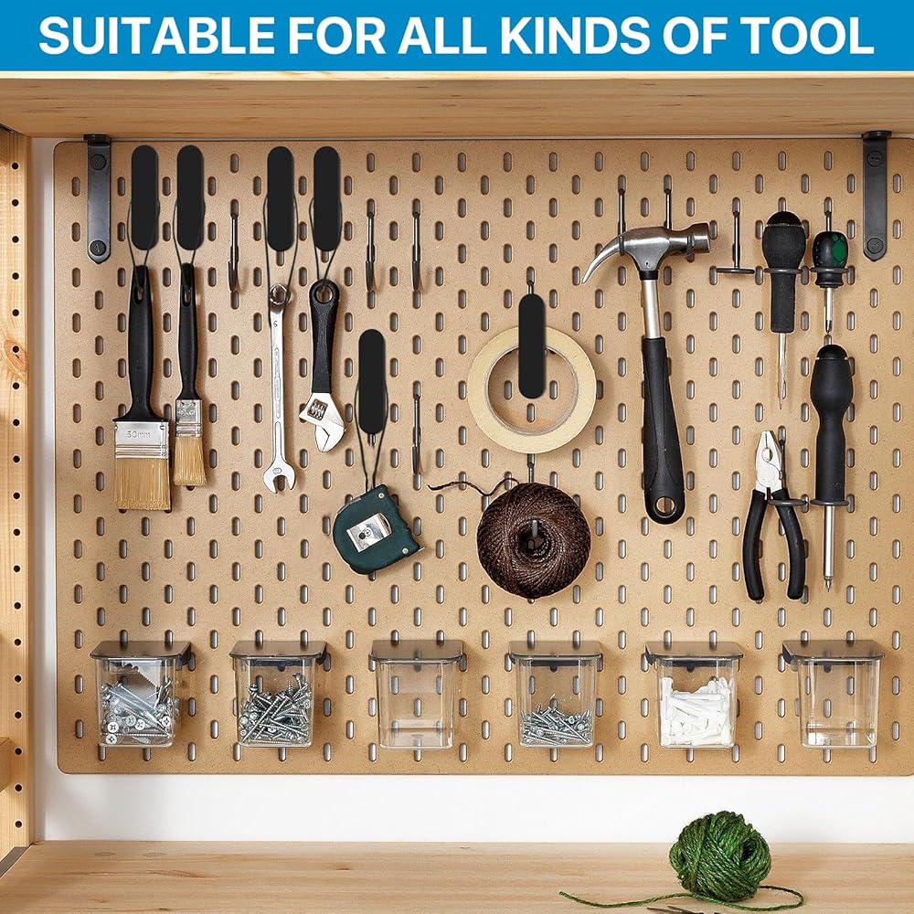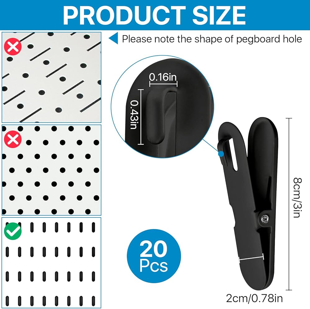 • EASY TO USE: Designed specifically for pegboards with oval holes, our pegboard accessory clips are incredibly easy to use. Simply hang them on the pegboard and they are ready to securely hold your items in place, storing things on both sides.