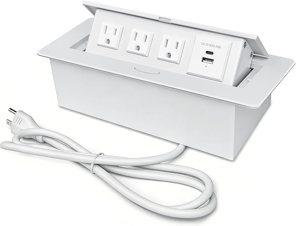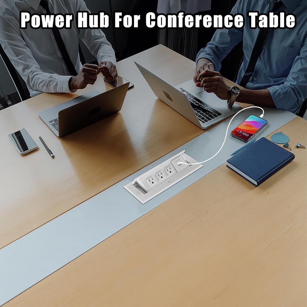 【محور طاقة طاولة متعدد الوظائف】صندوق توصيل طاولة المؤتمرات مع 3 منافذ وشواحن USB A وUSB C، يلبي متطلبات الشحن المتعددة في وقت واحد، ويعمل على تشغيل الهواتف وأجهزة الكمبيوتر والأجهزة الأخرى بكفاءة.