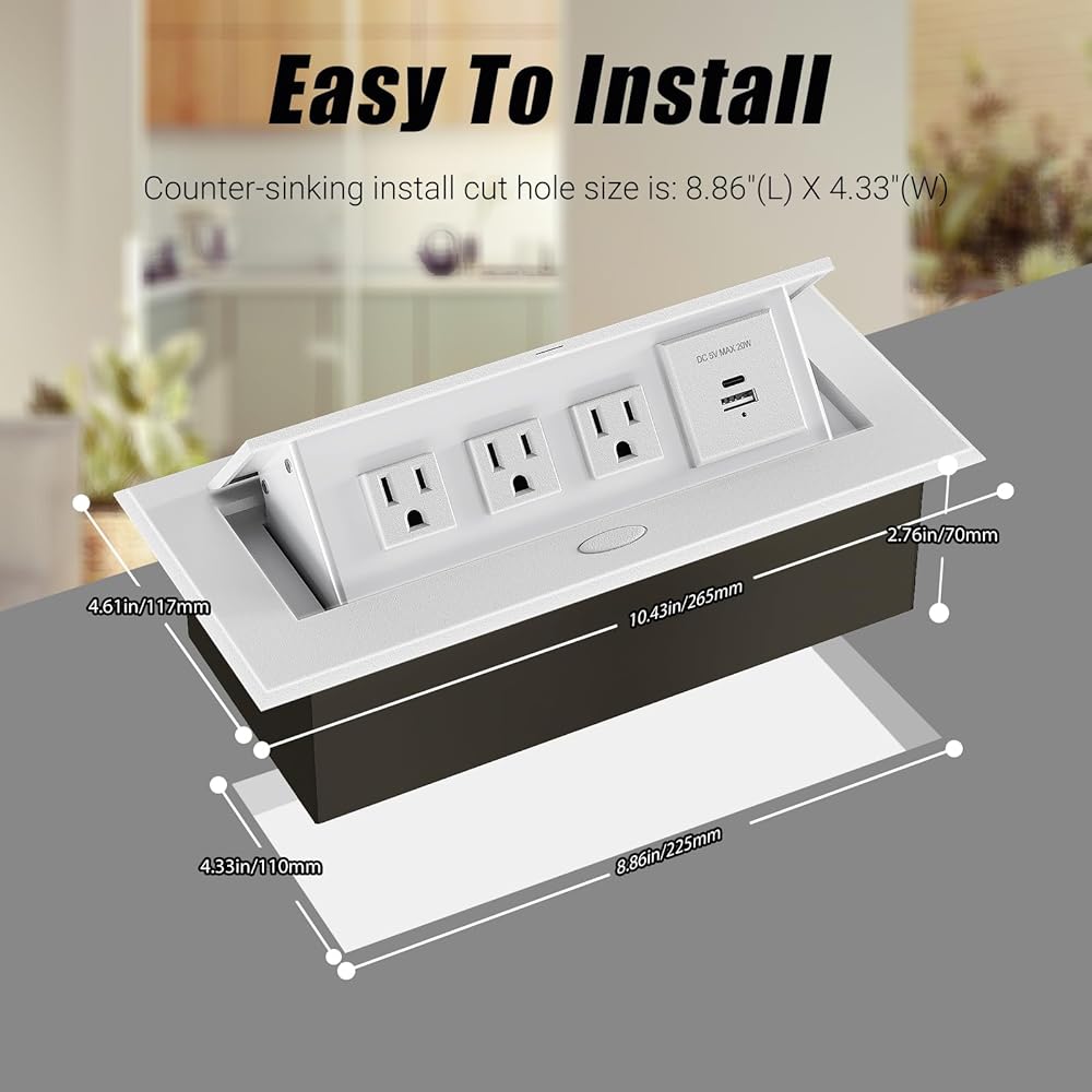 【مادة متينة】تضمن مادة سبائك الألومنيوم السميكة تثبيت شريط الطاقة المجوف للطاولة بشكل آمن، وتوفر حماية متعددة لعائلتك أيضًا.
