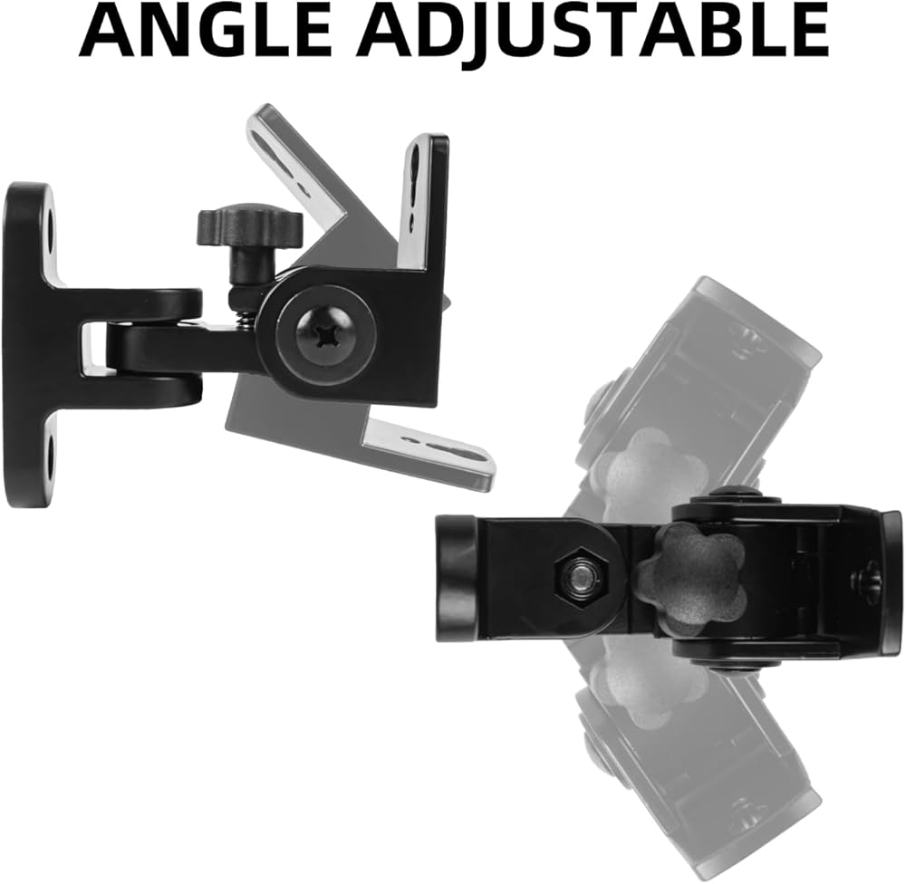 دعامات تثبيت على الحائط/السقف لمكبر الصوت العالمي، تعديل 180 درجة، عبوتان من المعدن الأسود على الحائط لمكبرات الصوت الصغيرة، ومكبرات صوت رف الكتب، وحامل مكبرات الصوت المحيطي - يدعم ما يصل إلى 30 رطلًا