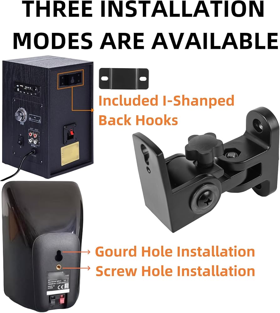 • 【زاوية قابلة للتعديل】- دعامات التثبيت على الحائط لمكبر الصوت لدينا مجهزة بتعديل أفقي ورأسي 180 درجة لضبط زاوية مكبرات الصوت بسهولة، مما يضمن إسقاط الصوت الأمثل في أي غرفة.