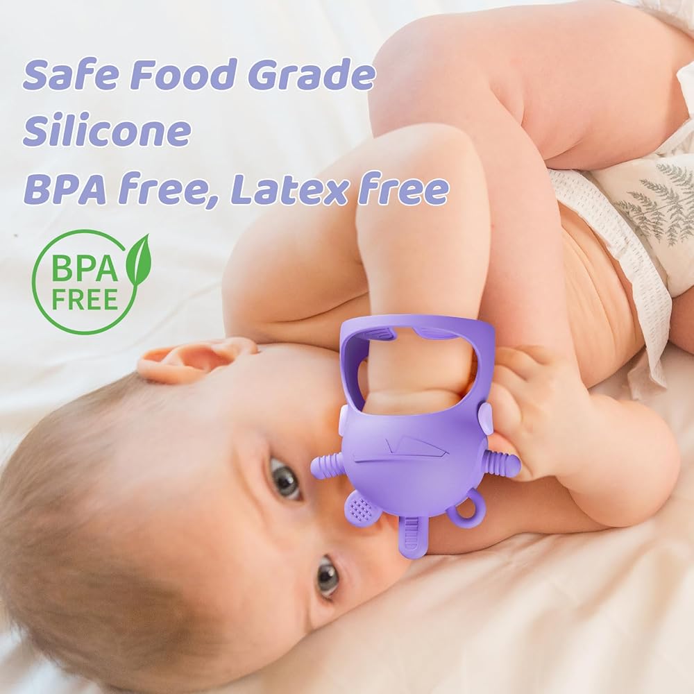 • 💜تصميم آمن: لعبة التسنين اليدوية للأطفال NCVI مصنوعة من سيليكون عالي الجودة صالح للطعام. لا توجد رائحة مزعجة، وغير سامة، وخالية من مادة BPA. آمن بنسبة 100% على الأطفال. يوجد جذع بالداخل لتتمكن اليد الصغيرة من الإمساك به. يمكن أن يكون معصم الطفل حرًا مما يحافظ على راحة اليد.