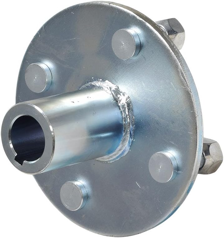 The 4" x 4" go-kart axle hub is most commonly found on go-karts using 8" wheels. The hub features four lug nuts and are 2-3/4" long. The inner bore is milled for a 1/4" axle key. The most common style for go-karts features a 1" inner (or inboard) shaft diameter with the axle turned down to a 3/4" outer diameter.