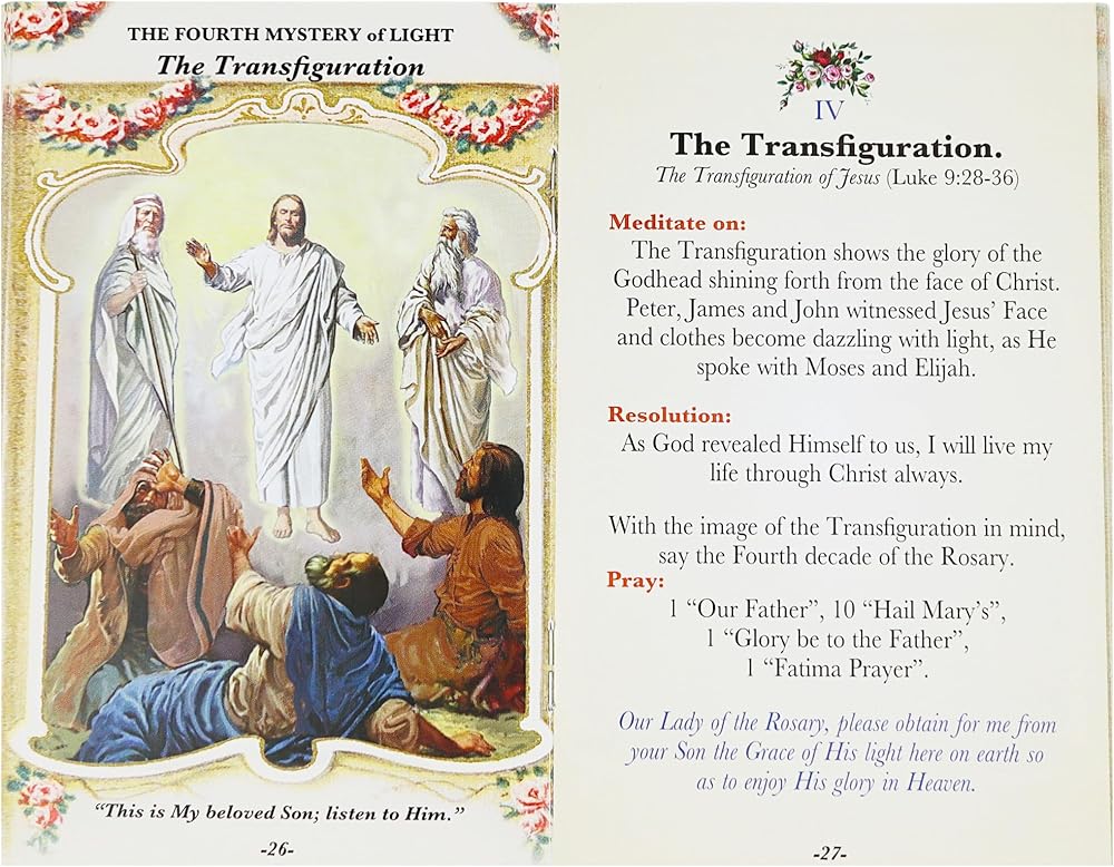 Vivid Illustrations: Features full-color illustrations of the Twenty Mysteries, aiding in meditation and understanding.