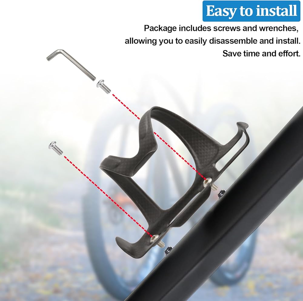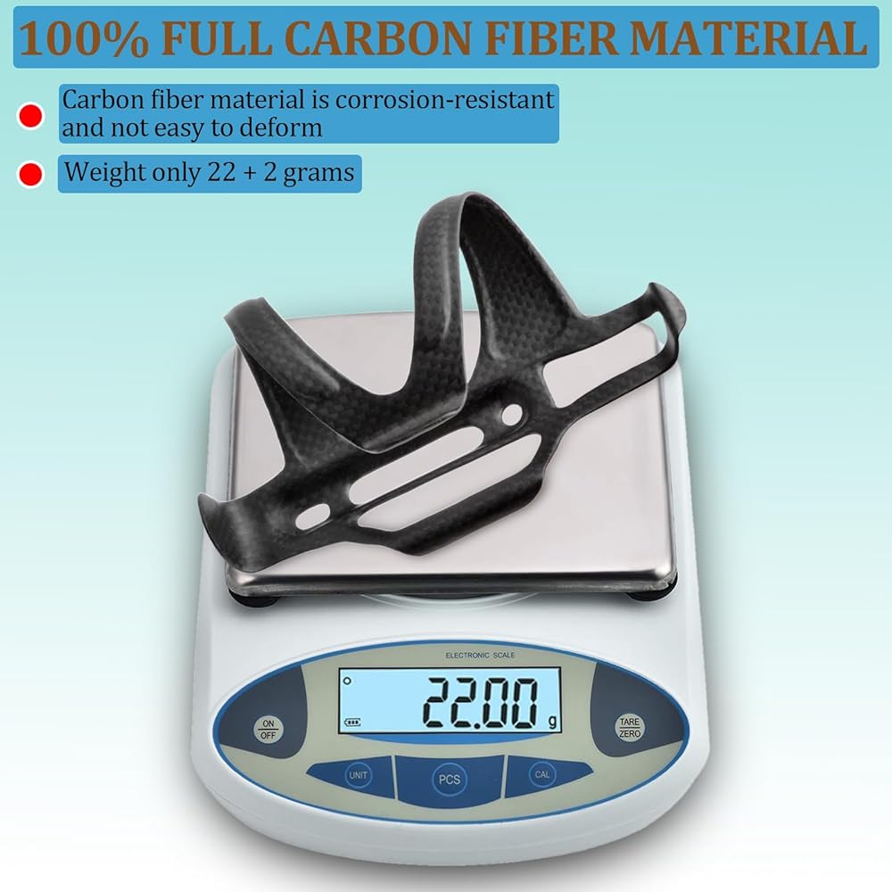 【ألياف كربون خفيفة للغاية】: قفص زجاجة مياه للدراجة TPard مصنوع من ألياف الكربون 3K المتقدمة بنسبة 100%، ويزن فقط (22±2 جرام)، مما يجعل أقفاص الزجاجات خفيفة الوزن وقوية. مثالية لراكبي الدراجات الذين يرغبون في تخفيف حمولتهم أثناء الرحلات الطويلة.