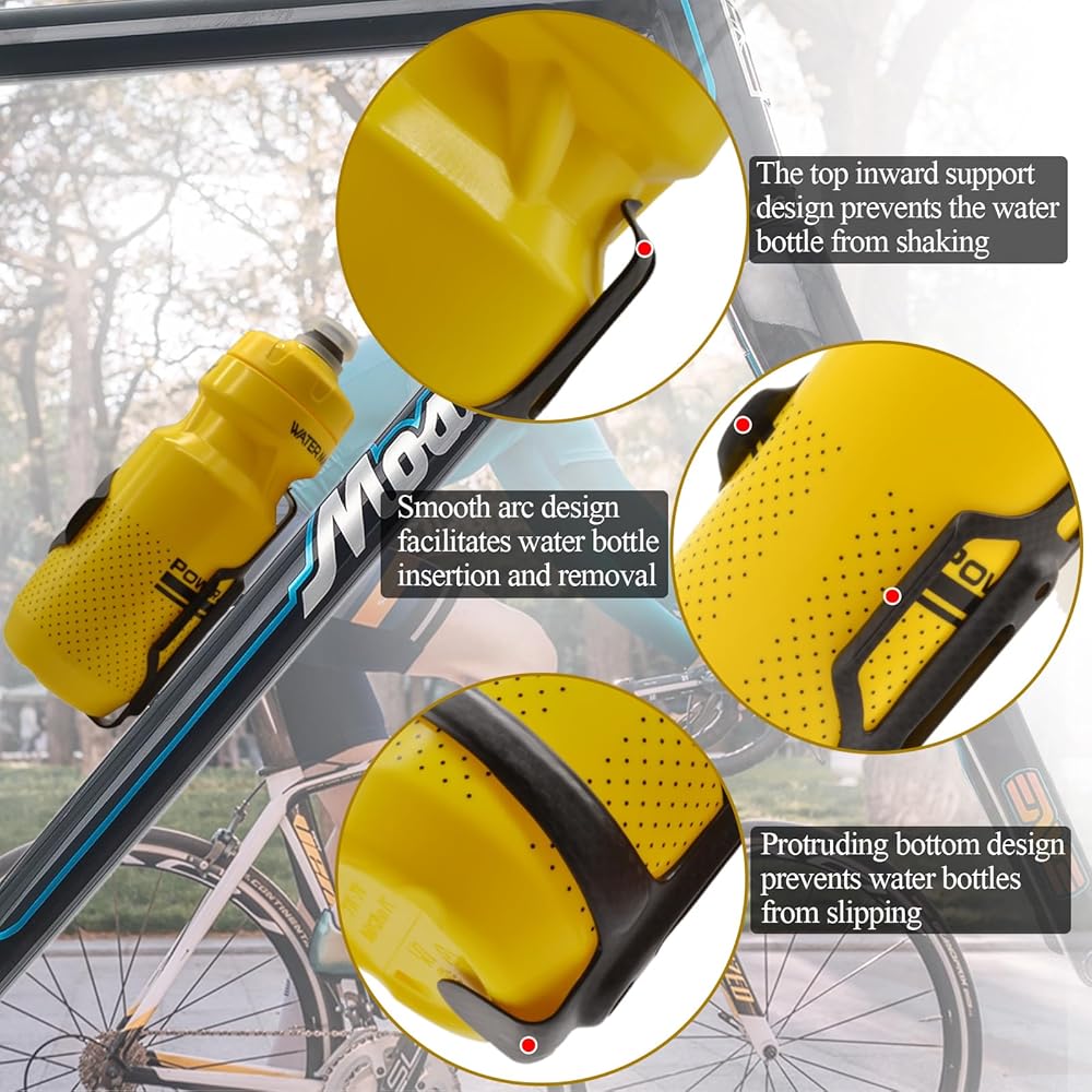 【مستقر ومتين】: يتميز حامل زجاجة مياه الدراجة بتصميم ذو حافة ناعمة، والذي لن يؤذي يديك أو يخدش الزجاجة بسهولة، مما يجعل الركوب أكثر أمانًا. يمكن لأقفاص زجاجات المياه الكربونية أيضًا أن تمنع بشكل فعال شيخوخة المواد الناتجة عن التعرض طويل الأمد لأشعة الشمس، مما يزيد من عمر خدمة قفص زجاجات مياه الشرب بشكل كبير.