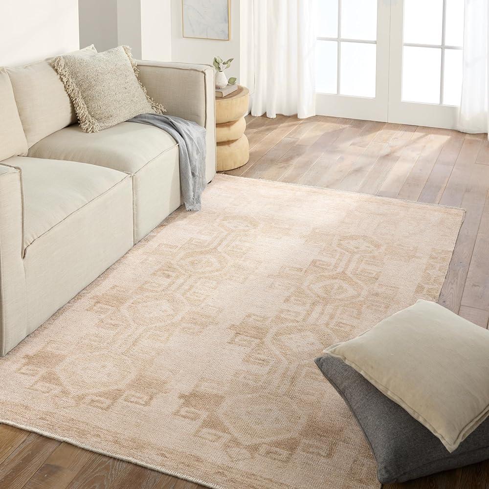 Distressed, vintage designs offer an elevated tone for this rug collection. The Barine rug features Southwestern-inspired medallions and a thin geometric border in tones of tan and cream. This machine washable rug is stain resistant and easy to clean, perfect for homes with children and pets. The 100% polyester fibers allow for maximum cleanability while maintaining a soft hand.
