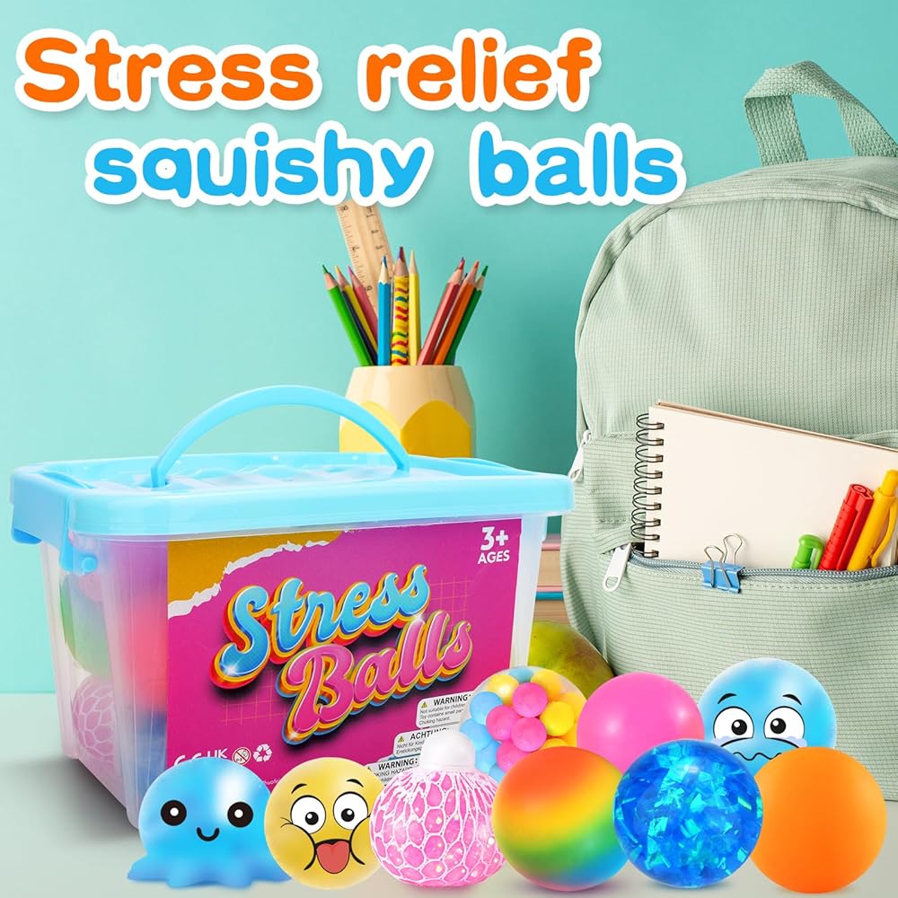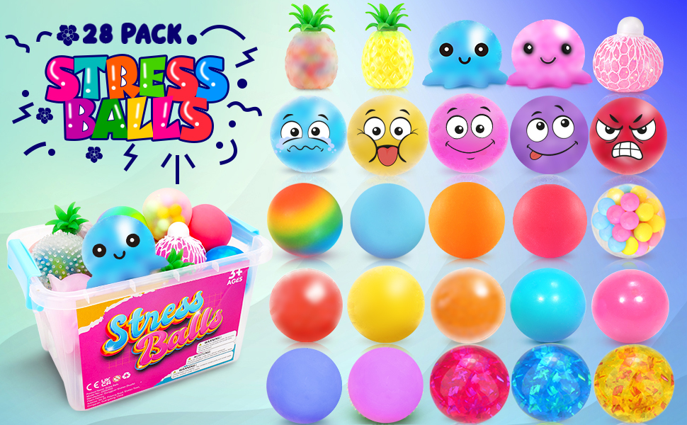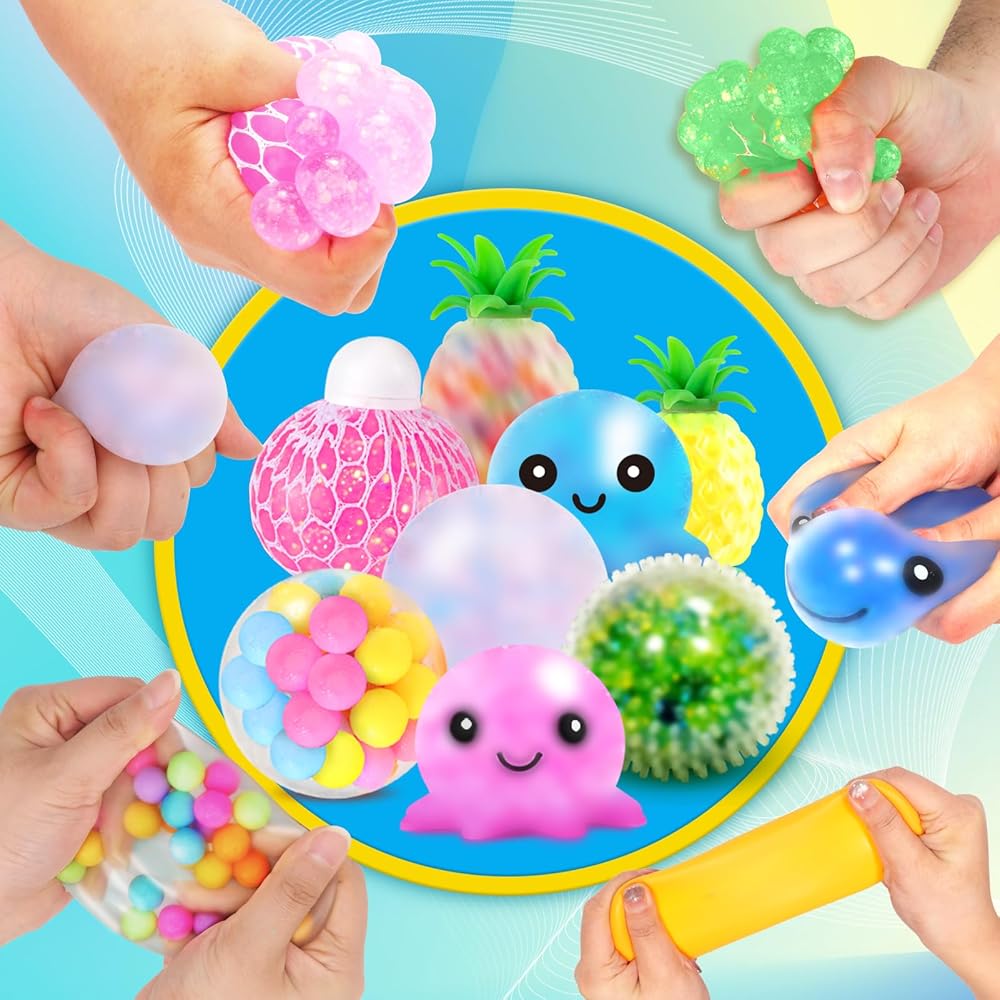 كرة إسفنجية للضغط: كرات إسفنجية متعددة الأنماط للبالغين تتضمن كرة ضغط حسية بألوان قوس قزح، وكرة عجينة ناعمة، وكرات ضغط إسفنجية للعاطفة، وكرات إسفنجية حسية شائكة، وألعاب إسفنجية على شكل أناناس، وكرات شبكية لتخفيف القلق، وما إلى ذلك. إسفنجية للغاية وقابلة للتمدد. 28 قطعة من الكرات الإسفنجية لتخفيف التوتر يمكن أن تكون الخيار الأمثل لتخفيف التوتر من أجل ADD/ADHD، والوسواس القهري، والتوحد.