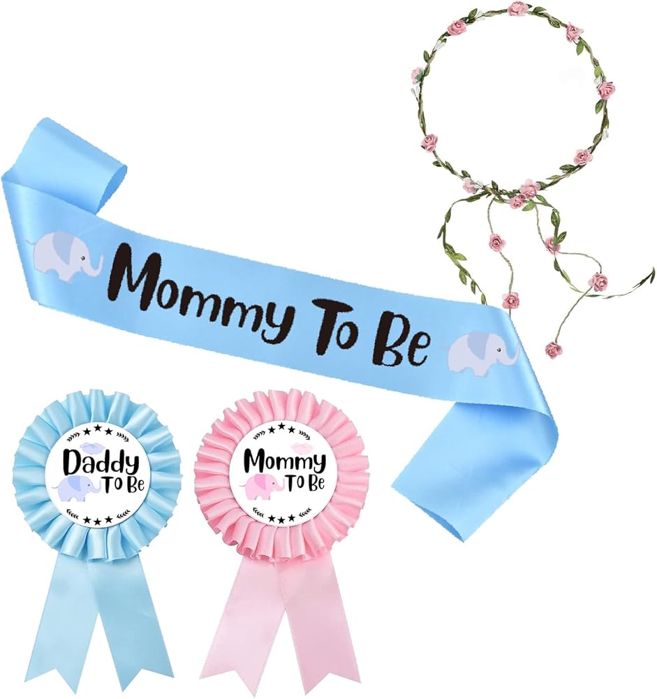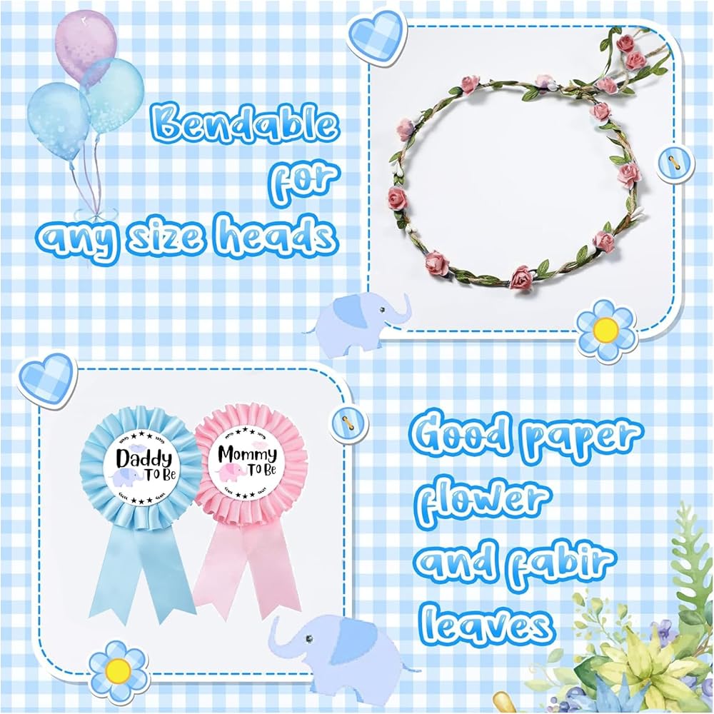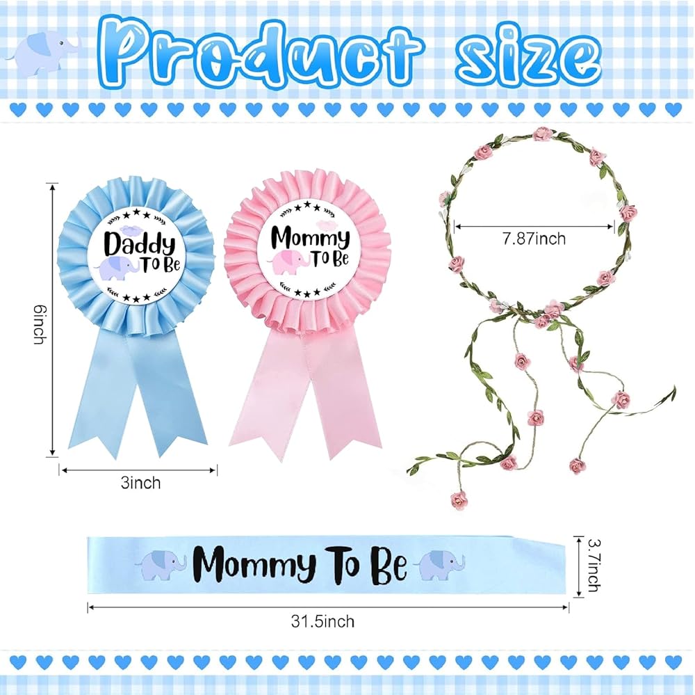 • APPROPRIATE SIZE: The mommy to be sash measures 63 x 4 inches and is suitable for any mom; the dad-to-be pin measures approximately 3 inches in diameter and 6 inches in length and is suitable to be worn on any type of shirt; the flower crown measures approximately 7.87 inches in diameter and the attention-grabbing design is sure to make you look elegant while celebrating the arrival of your little one.