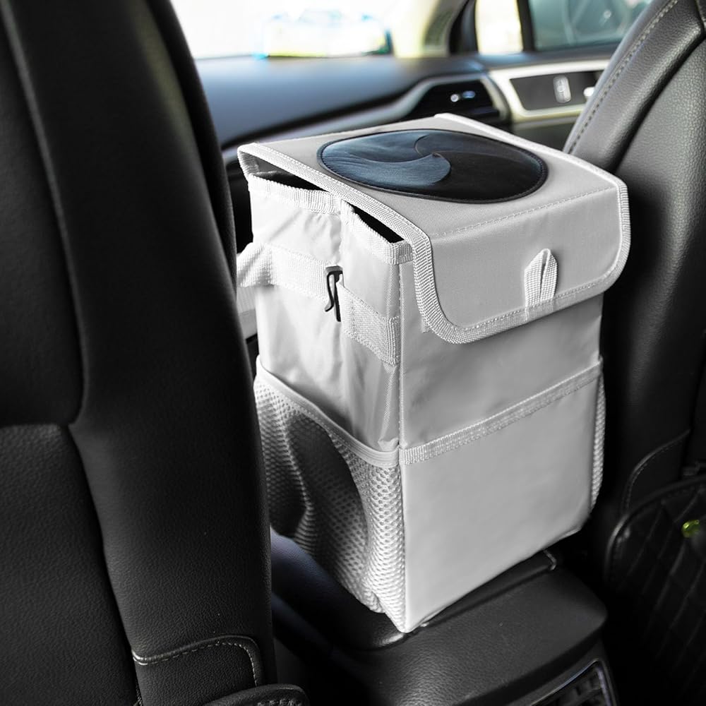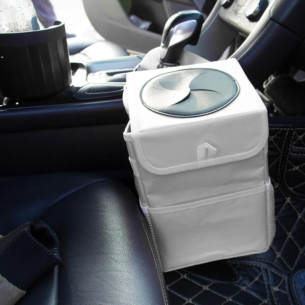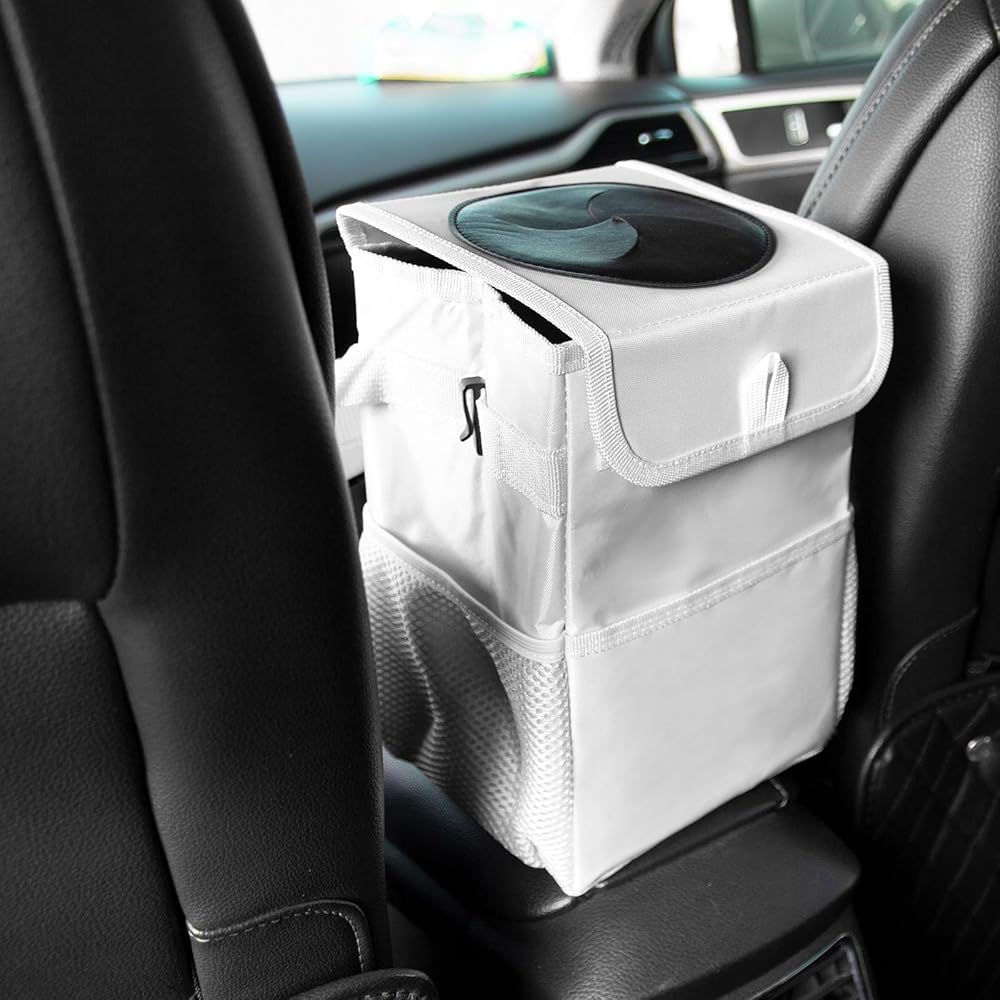 Practical PU Leather Cover,A garbage bin with lid is designed to take care of the interior of every car, which is embarrassing when there are other passengers. A trash can with a lid can make it look