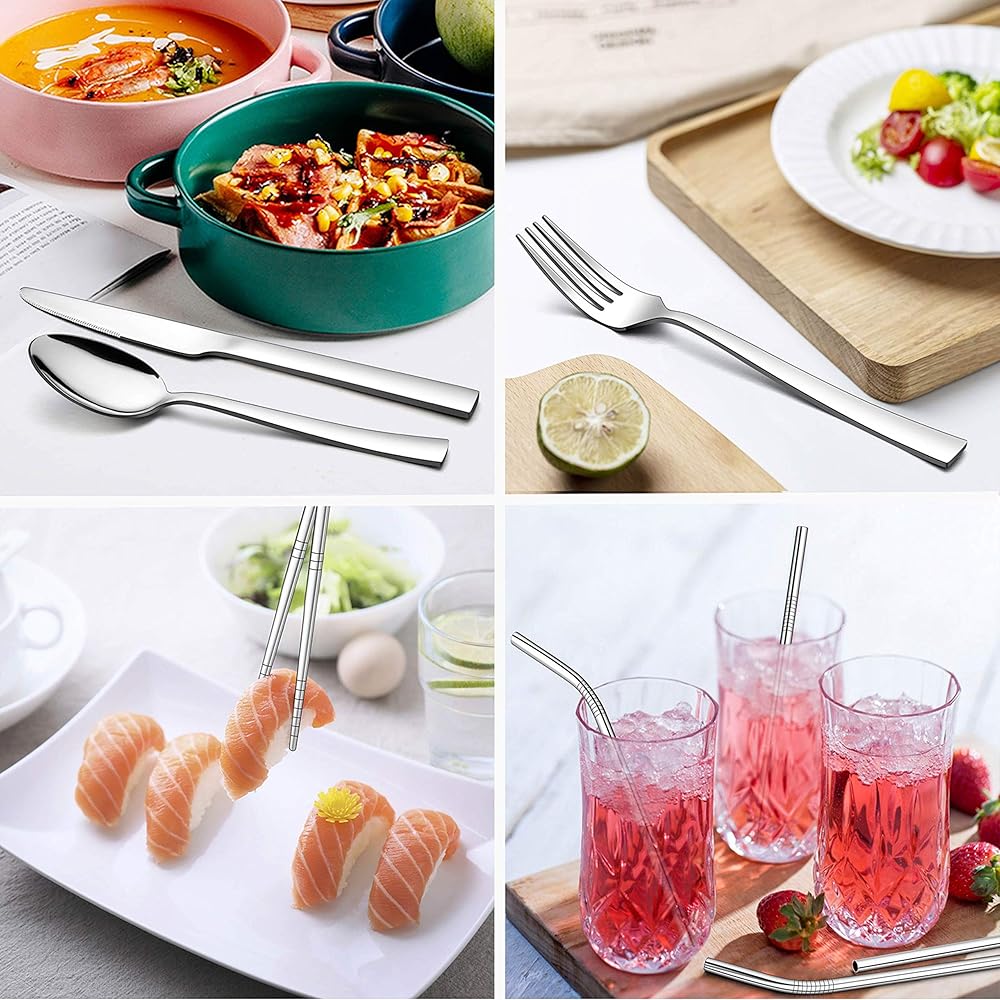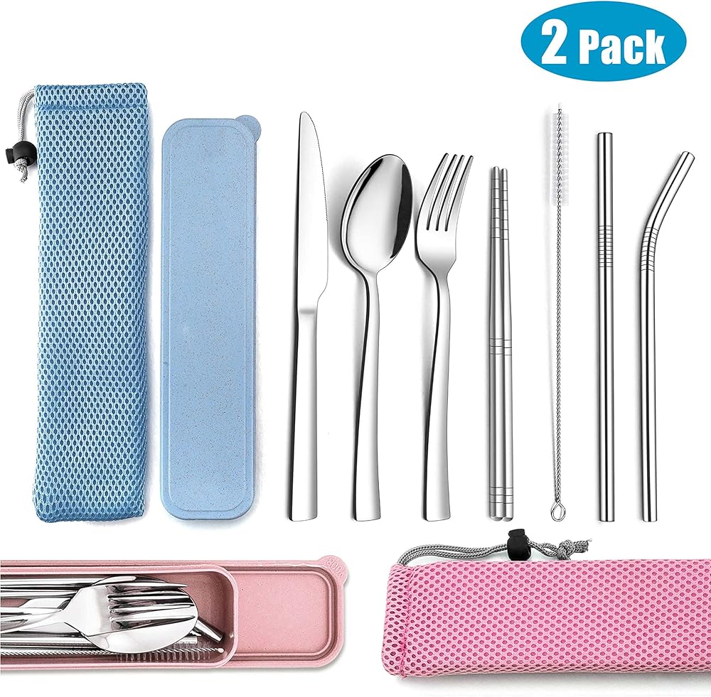 • صديقة للبيئة، مجموعة أدوات السفر المصنوعة من الفولاذ المقاوم للصدأ القابلة لإعادة الاستخدام صحية وصديقة للبيئة للاستخدام اليومي، وهي بديل جيد لمجموعة أدوات المائدة البلاستيكية التي تستخدم لمرة واحدة لتقليل التلوث الأبيض، وسهلة التنظيف عن طريق الغسيل اليدوي، وآمنة للاستخدام في غسالة الأطباق.