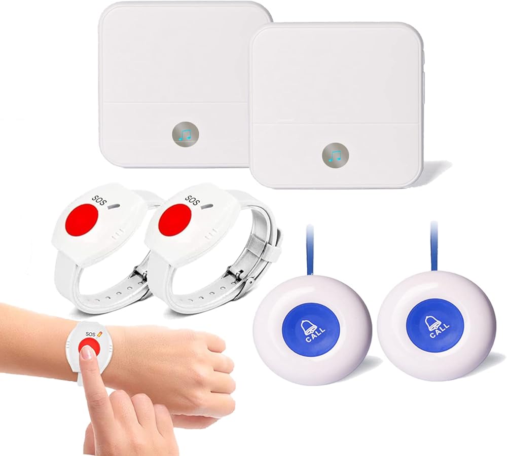 Wireless caregiver pager with 4 nurse call buttons and 2 receivers easy to use for home nursing