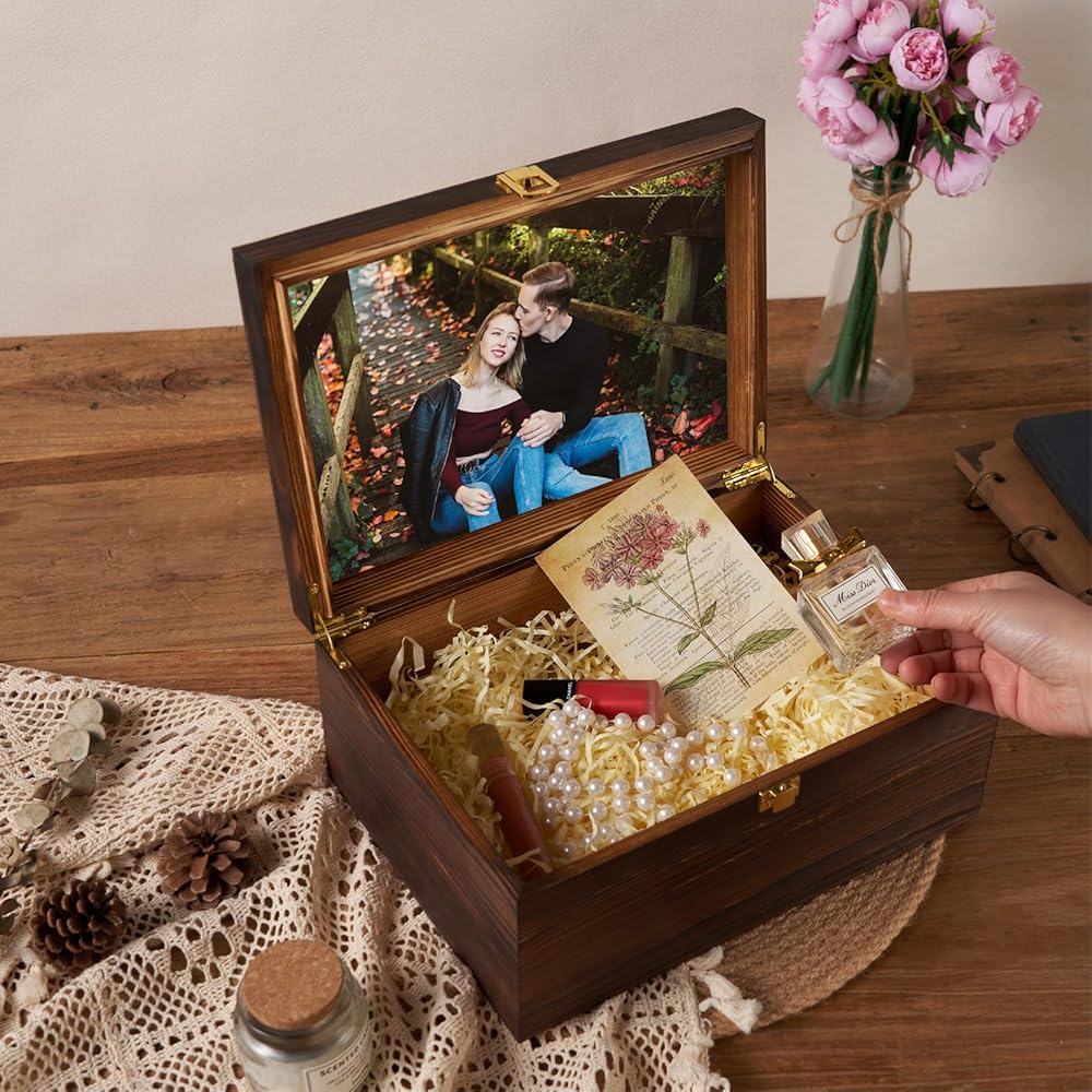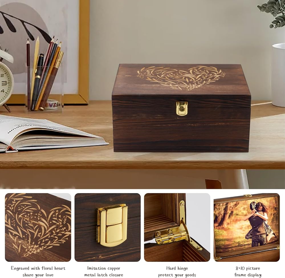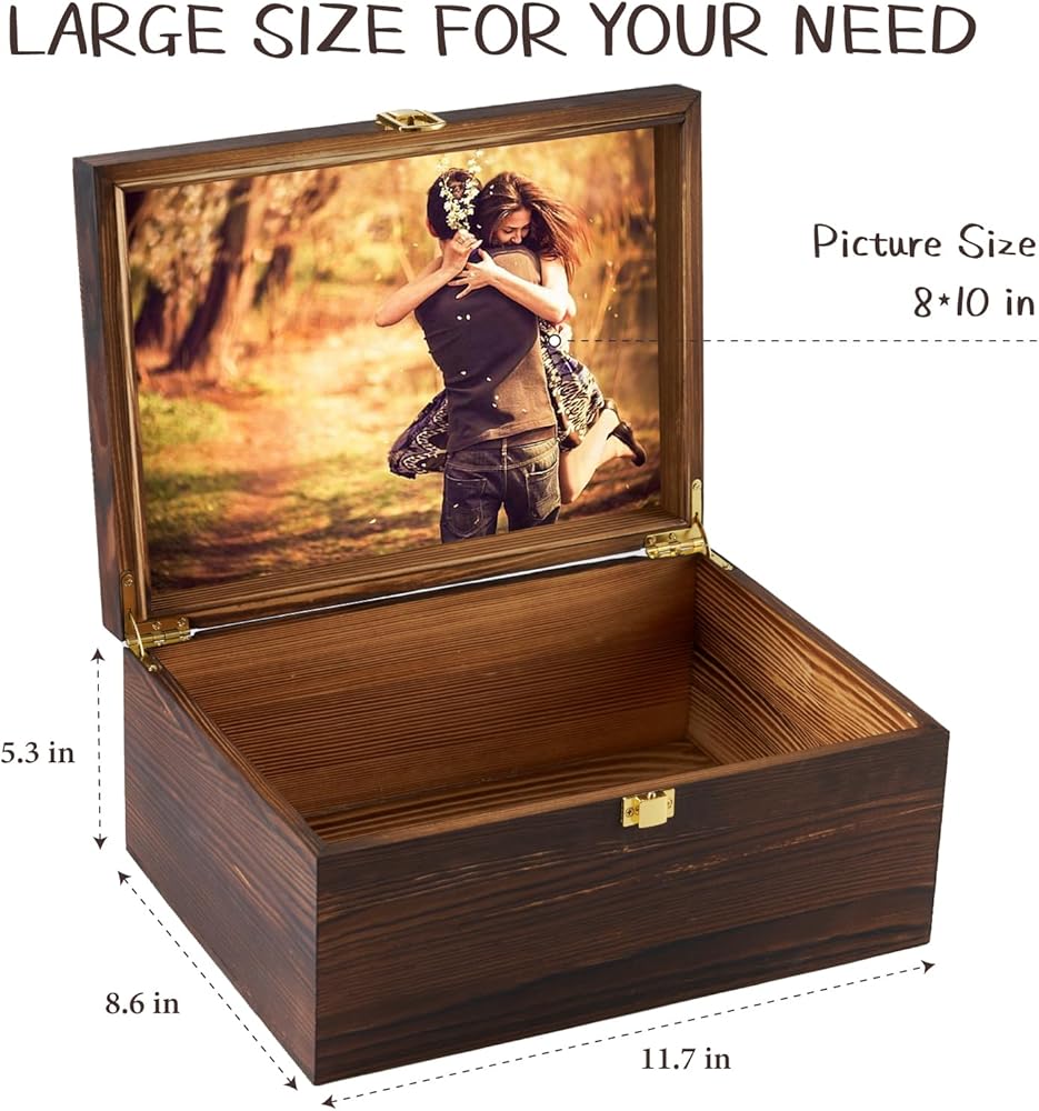 الحفاظ على الذكريات بأناقة - لمسة فريدة على الصناديق التقليدية أطلق العنان لإبداعك مع صندوق التذكارات الخاص بنا، حيث تلتقي الوظيفة مع المظهر الجمالي. يُفتح الغطاء ليكشف عن حجرة خاصة مناسبة تمامًا لحماية صورك الفوتوغرافية مقاس 8*10 بوصة. احتفظ بلحظاتك المفضلة واعرضها بفخر، حيث يمتزج هذا الصندوق بسلاسة مع أي ديكور منزلي، مما يضيف لمسة شخصية إلى مساحة معيشتك.