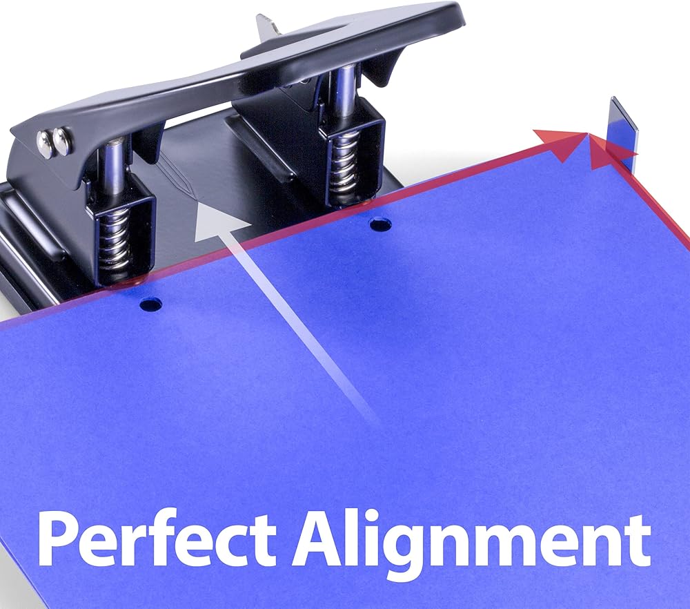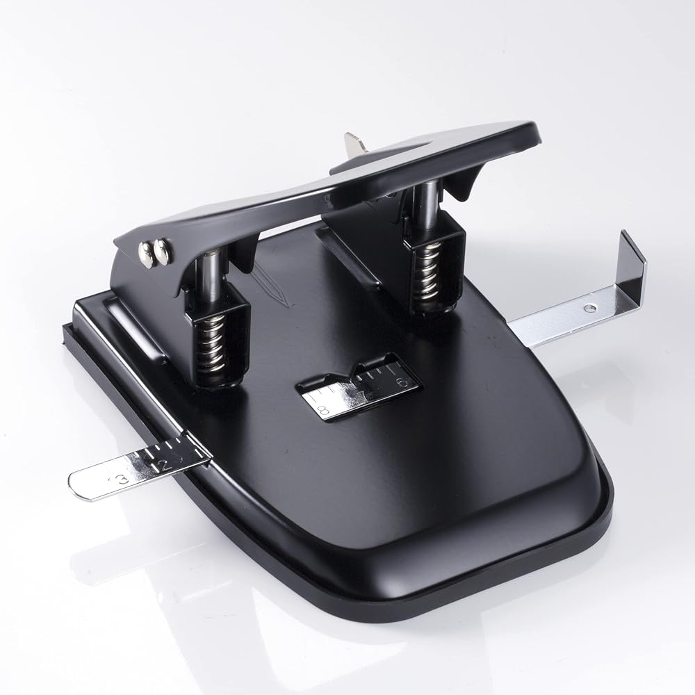 تعمل هذه الخرامة ذات الفتحتين على ثقب ¼ انش، 2¾ انش من المركز إلى المركز وهي مناسبة للاستخدام مع أدوات التثبيت ذات الشوكة. سعة 30 ورقة بوزن 20 باوند. ورق. مقياس مركزي قابل للتعديل لدقة التثقيب. صينية رقائق سهلة التفريغ.
