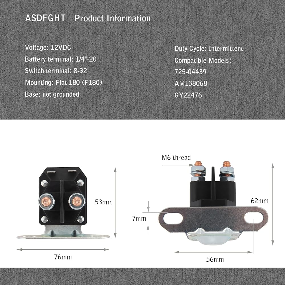 يستبدل أرقام الأجزاء: استبدال مباشر لأجزاء OEM بما في ذلك MTD 725-04439، AM138068، Cub Cadet: 725-04439، وTrombetta 816-1211-211-16 من بين أشياء أخرى، مما يجعله مكونًا متعدد الاستخدامات وأساسيًا لنظام بدء جرار العشب الخاص بك.