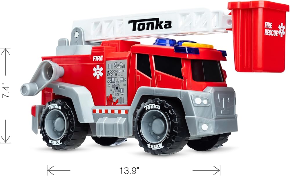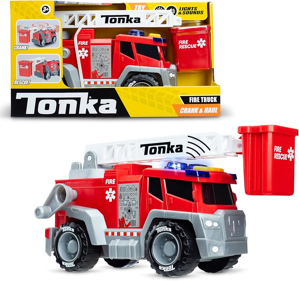 Tonka Tough: Trust the Tonka name for high-quality toys that last. Save lives, protect the city, and prove that you have what it takes to be a true hero with our red Crank and Haul Fire truck. Its authentic styling, durability, and action-packed features make it the ultimate companion for brave firefighters like you!