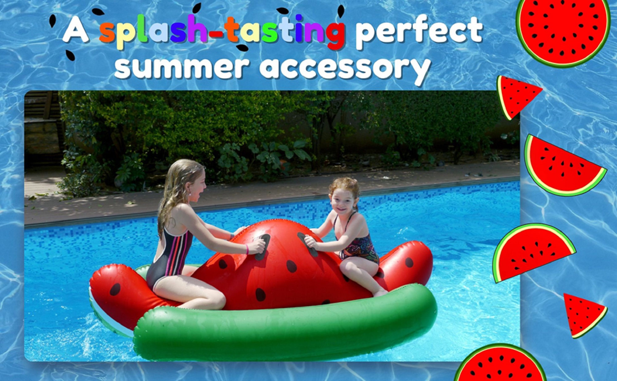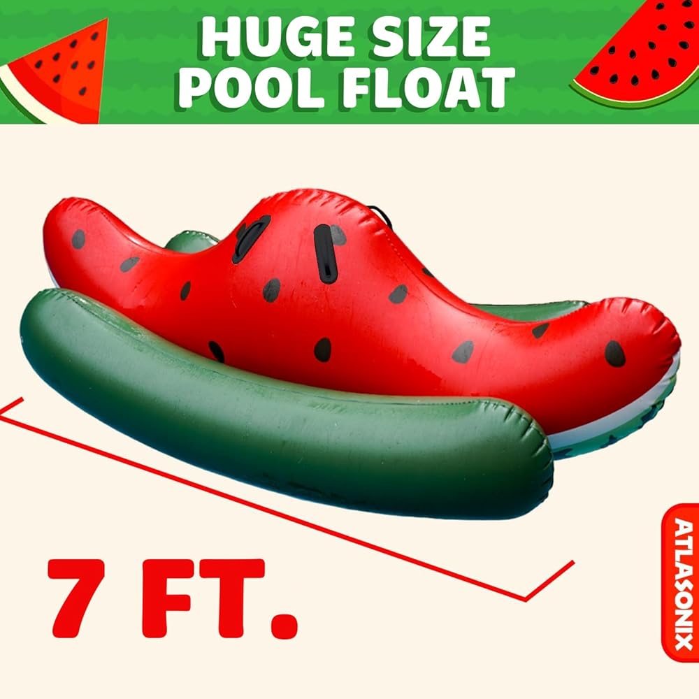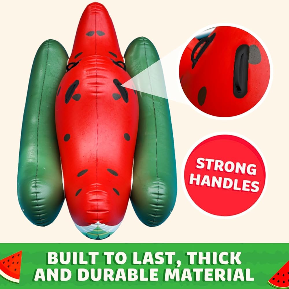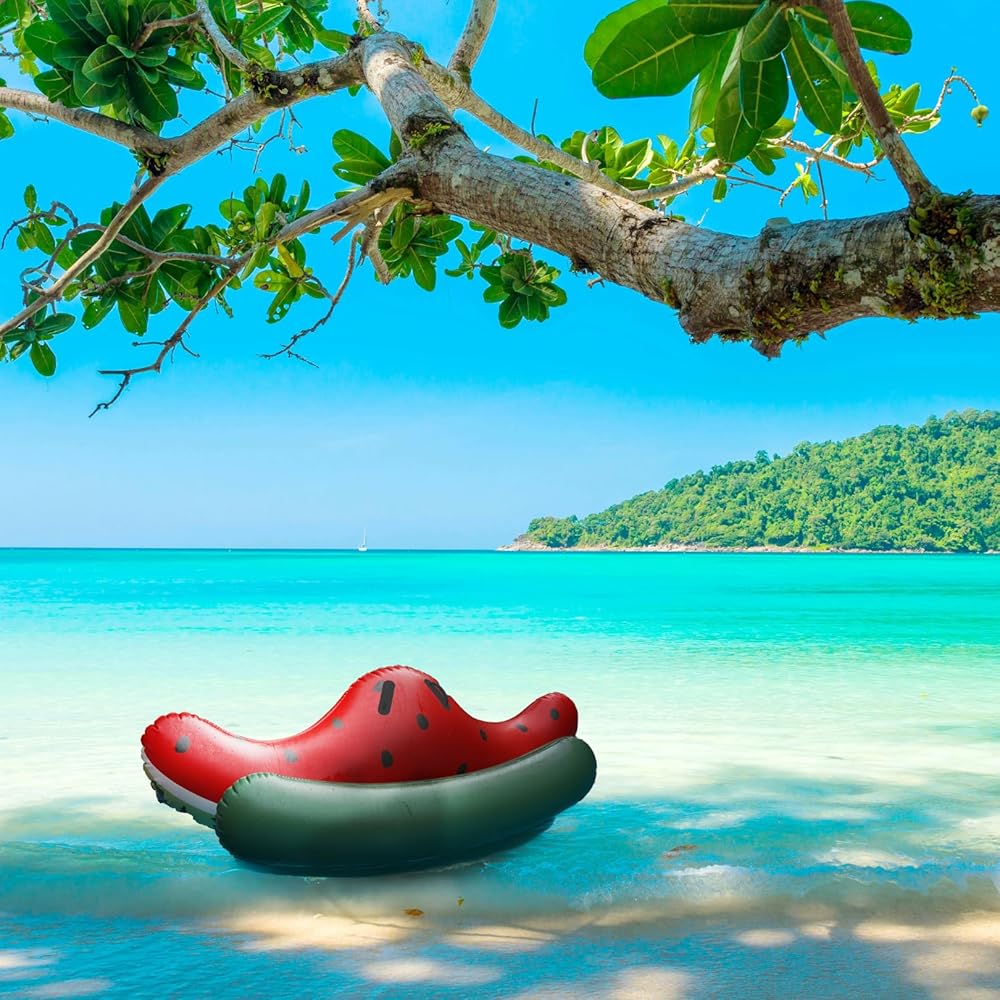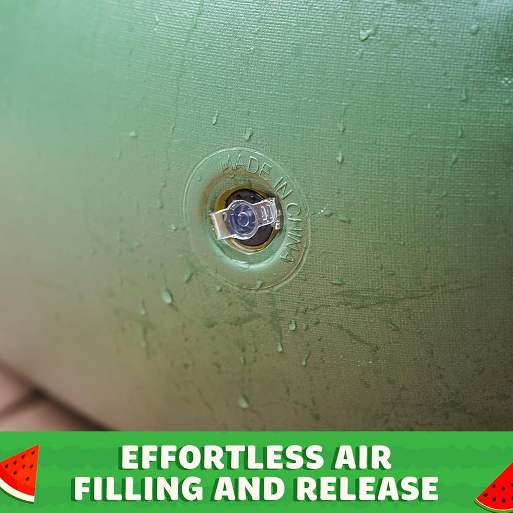 • تصميم البطيخ النابض بالحياة: تميز بتصميم جريء وملفت للنظر مستوحى من البطيخ، مما يضيف لمسة مرحة إلى مغامراتك بجانب حمام السباحة.