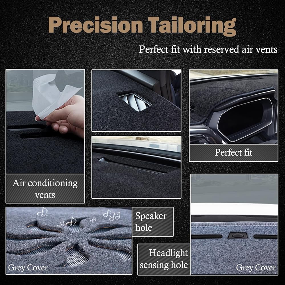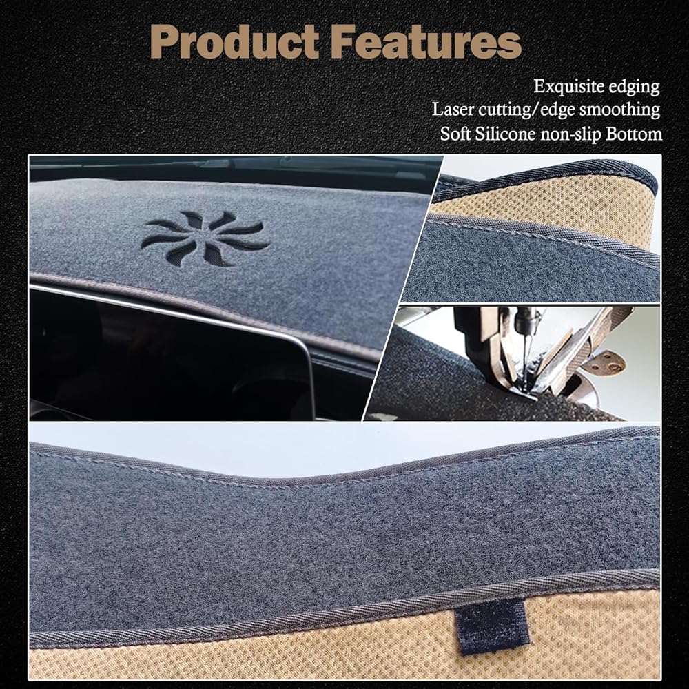 • 🚗🚗🚗【تصميم مخصص】- قطع بالليزر، وفتح قالب سيارة مخصص، وملاءمة مثالية، وخياطة دقيقة مناسبة لقوس السيارة الأصلية. جميع فتحات تذويب الجليد وفتحات تكييف الهواء مقطوعة مسبقًا. الجزء الخلفي من حصيرة غطاء لوحة القيادة مصنوع من جزيئات السيليكون غير القابلة للانزلاق، ومجهز أيضًا بشريط فيلكرو، مما يزيد من تقوية التثبيت.