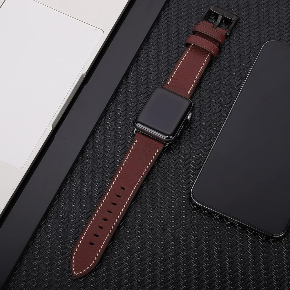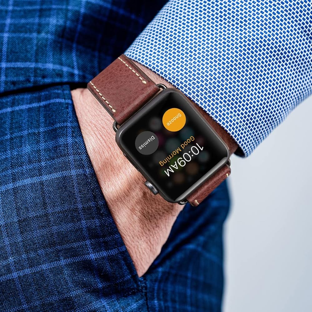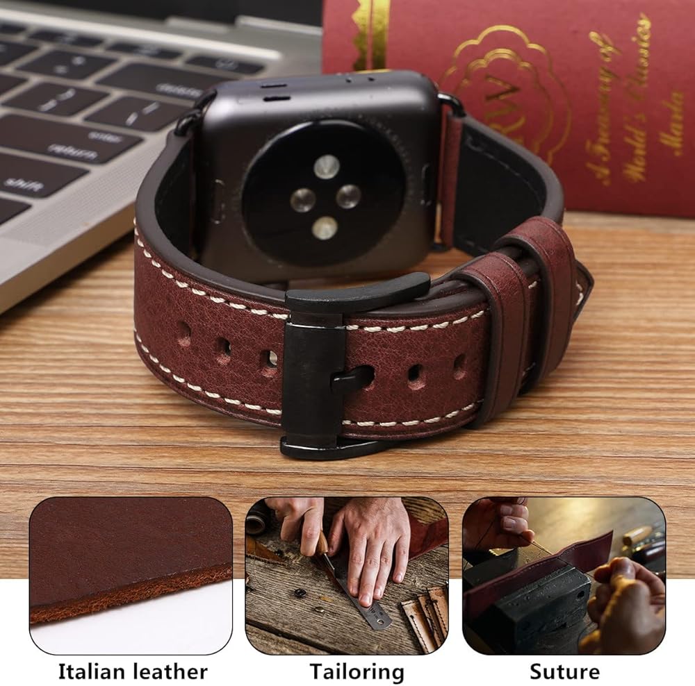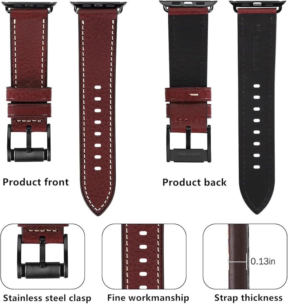 تصميم أنيق: تتميز ساعة Ultra Band بنمط جلدي عصري، وحرفية رائعة مع إبزيم ساعة من الفولاذ المقاوم للصدأ الأسود المؤكسد وخياطة كلاسيكية سلسة تجعل ساعة Apple الخاصة بك تبدو أنيقة ومميزة.