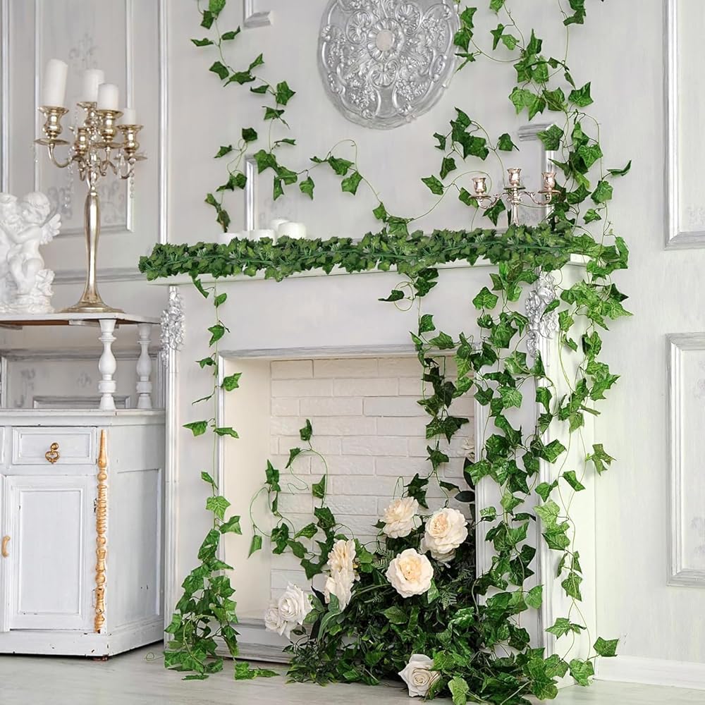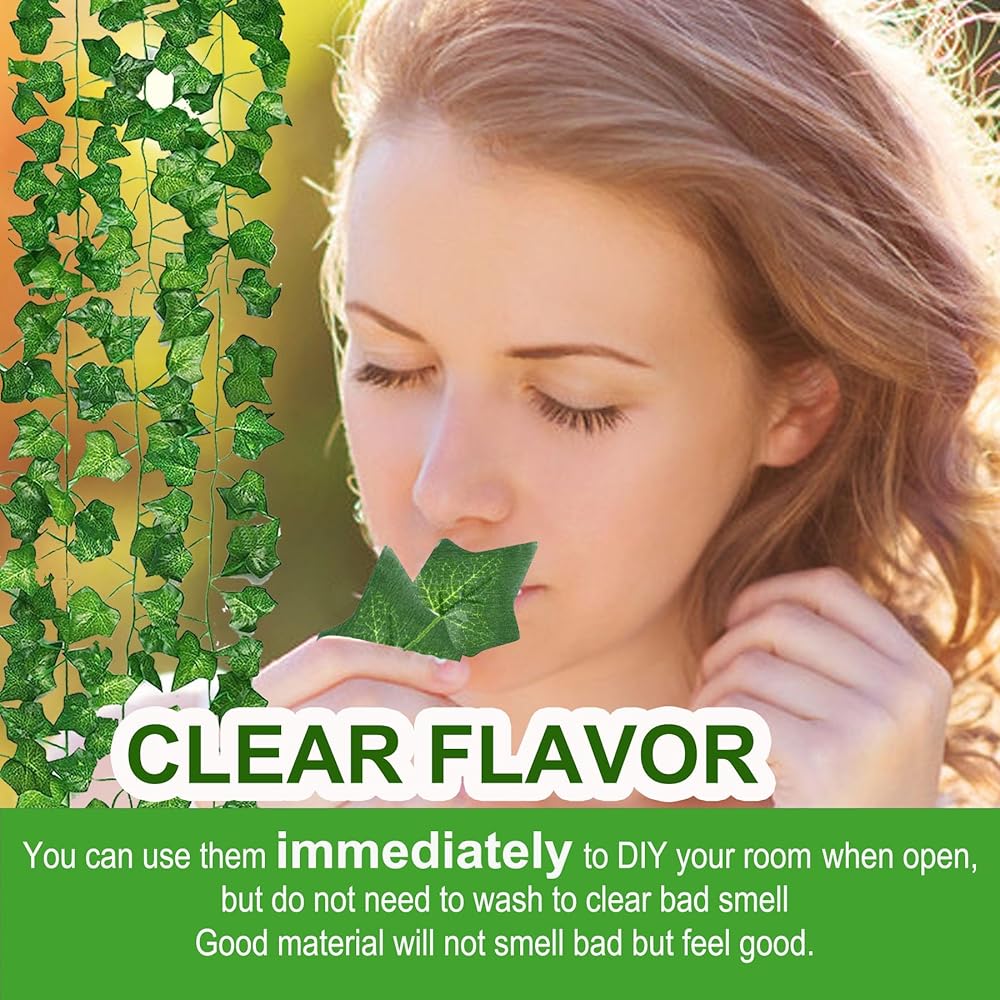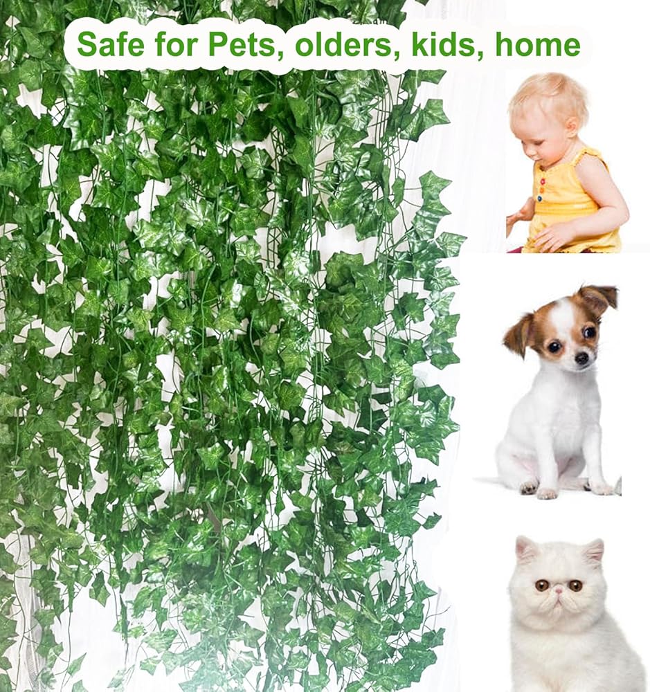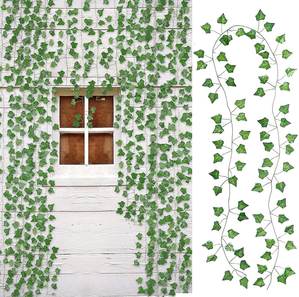 28 Strands Ivy Kit: Each separate ivy hanging vines for room decor approx 7FT long, total 196Ft, our faux ivy leaves have 72 leaves in 2 sizes diameter approx 1.5inch and 1.7inch;Waterproof & no color change, ideal and safe decorations for home
