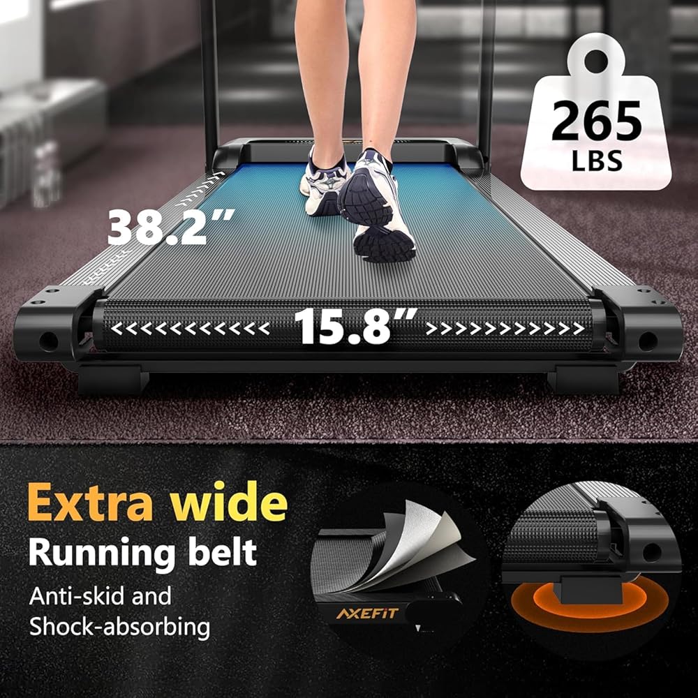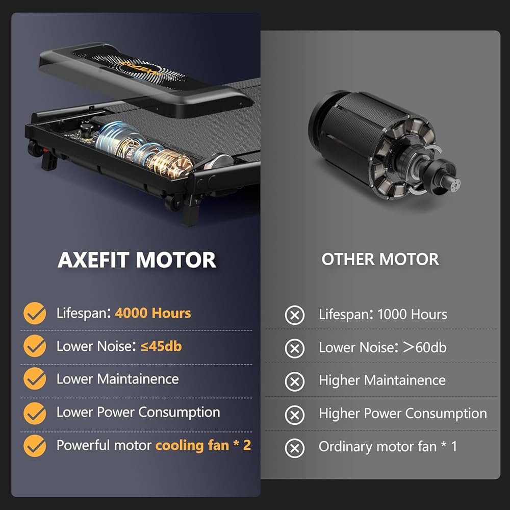 【قوة 2.5 حصان ومحرك ثابت】وسادة المشي AXEFIT، مع محرك 2.5 حصان بسعة تحميل قصوى تصل إلى 265 رطل مما يحافظ على مستوى الصوت أقل من 45 ديسيبل أثناء تشغيل جهاز المشي. يتيح لك استخدامه في أي وقت في المكتب والمنزل دون القلق بشأن إزعاج الآخرين. استمتع بتجربة تمرين هادئة ومريحة مع جهاز المشي.