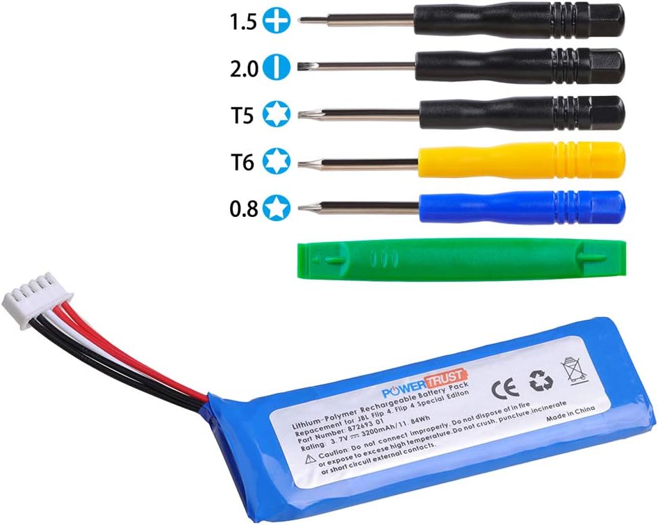 - Battery Specifications: Capacity:3200mAh ,Voltage:3.7V, Battery Type:Lithium Ion ,Model Number: Flip 4 Battery, Product Type: Rechargeable Li-ion Battery Pack