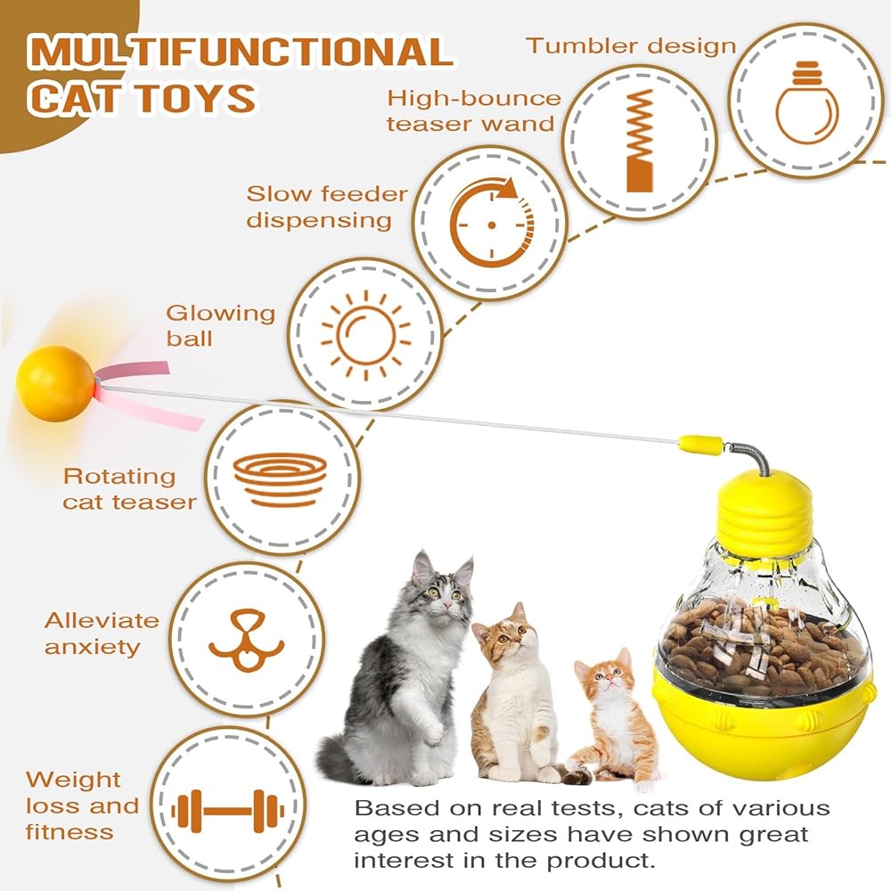 ❤️【لعبة ألغاز تفاعلية متعددة الوظائف للقطط】 تجمع بين الإثارة التي توفرها لعبة ألغاز القطط، ومشاركة لعبة القطط التفاعلية، وإثارة موزع حلوى القطط، فإن لعبة ألغاز القطط التفاعلية متعددة الوظائف الخاصة بنا هي متعة لصديقك المكسو بالفراء. يشتمل تصميمها المبتكر على هيكل يشبه البهلوان، وقضيب إغاظة فائق المرونة، وموزع طعام متأرجح، ومصباح كهربائي متلألئ، وميزات دوارة، وألعاب شريطية من الساتان، مما يوفر خيارات ترفيه لا حصر لها لقطتك. قم بتقوية الرابطة مع قطتك أثناء ممارسة التمارين والاستمتاع بالمكافآت مع هذه اللعبة متعددة الاستخدامات.