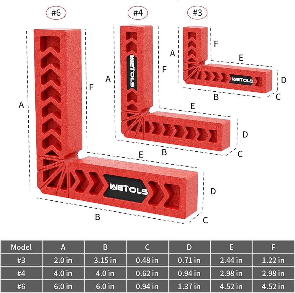 • 【3 مقاسات】 تتضمن مجموعة مشابك الزاوية بزاوية 90 درجة 12 قطعة من مربعات تحديد المواقع، 3.4 و6 انش، كل مقاس يأتي مع 4 قطع، وهي مناسبة لمختلف أنواع المشروعات الخشبية.
