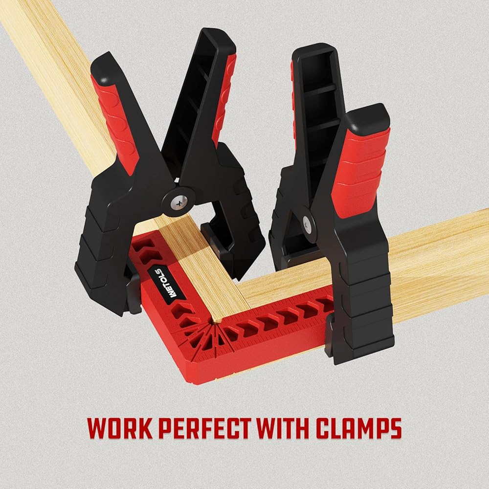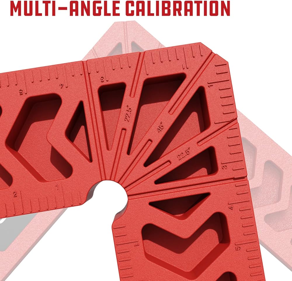 • 【90 درجة】مع المشابك المربعة بزاوية قائمة 90 درجة، لن تقلق بعد الآن بشأن إجراء درجات غير دقيقة. كما أنها تعمل كمسطرة، مع مقاييس واضحة بالانش والمليمترات، معايرة متعددة الزوايا، 45 درجة و22.5 درجة. يمكنك صنع مربع مثالي بسهولة.