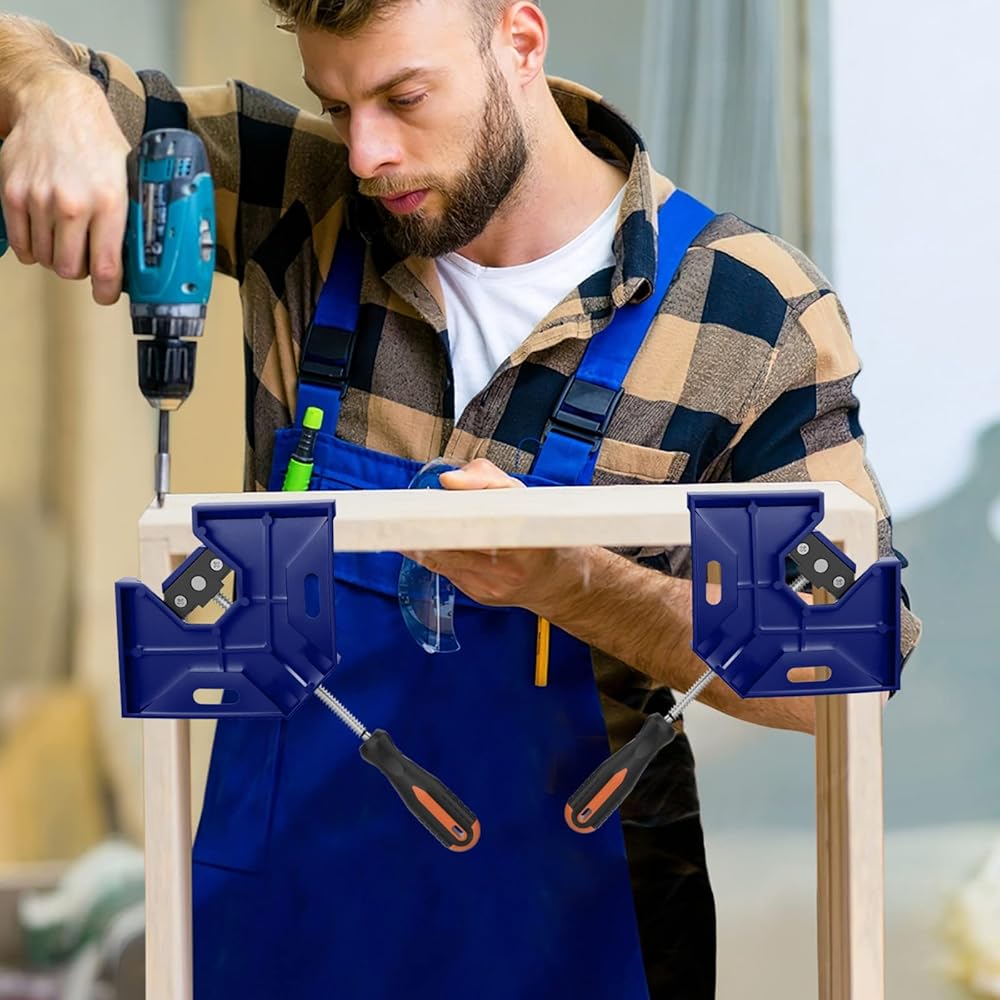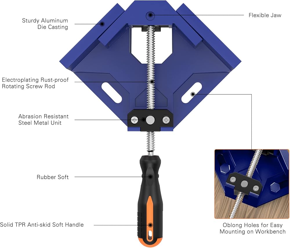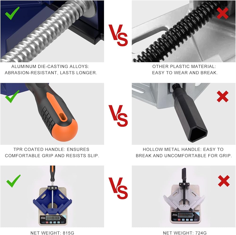 【مشابك زاوية عالية الجودة】: مشابك خشبية متينة بزاوية 90 درجة، مصنوعة من مادة صب سبائك الألومنيوم الممتازة مع طلاء مقاوم للصدأ المعالج بالحرارة، مما يضمن مقاومة التآكل وشديد التحمل واستخدام طويل الأمد.