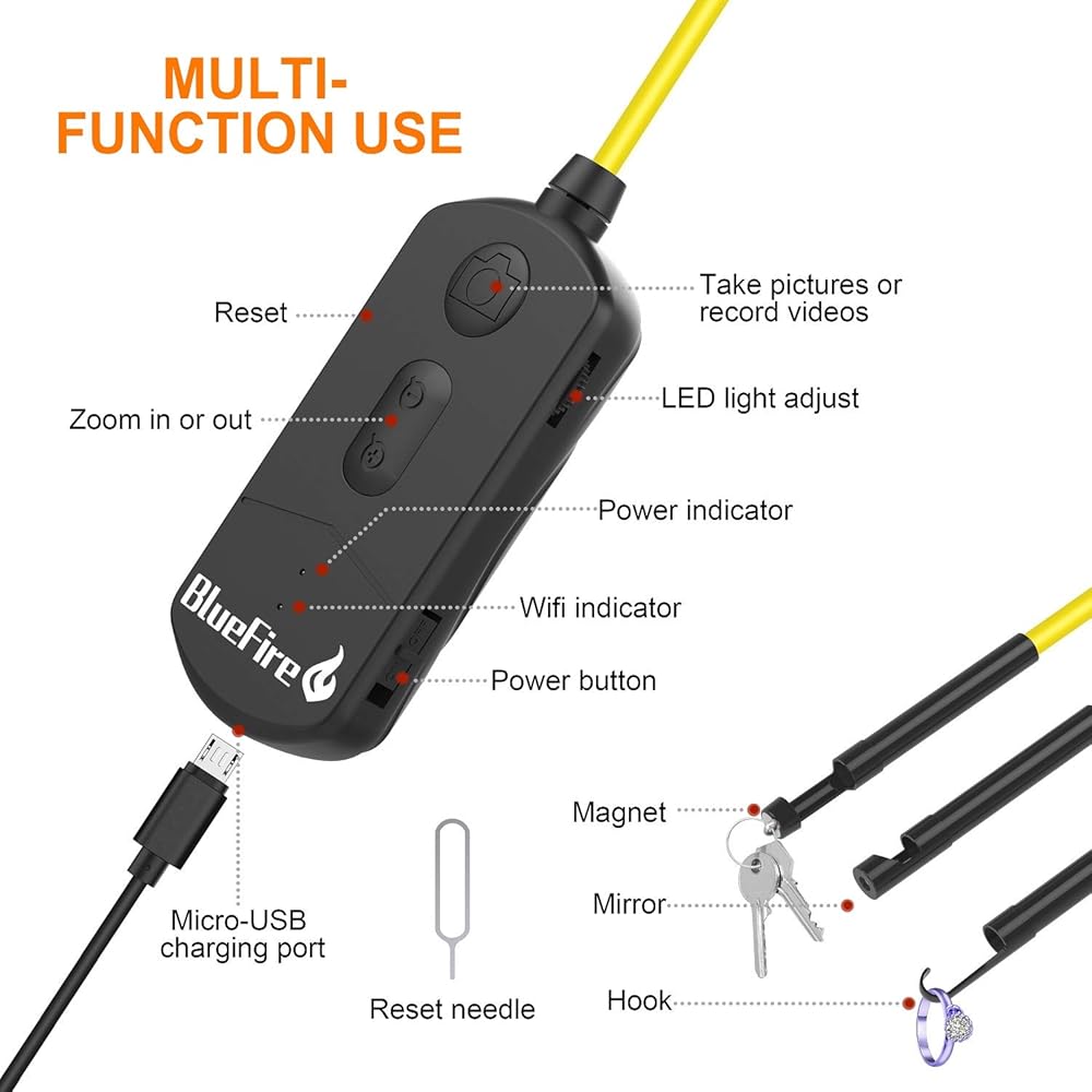 【كابل شبه صلب】يمكّن الكابل شبه الصلب المنظار من الحفاظ على الشكل حيث يمكنك التحكم في اتجاه المنظار بسهولة ثني الكابل أو فرده للوصول إلى المساحات المحدودة أو الأماكن المظلمة الضيقة لإجراء اختبارات غير مدمرة مثل المعدات الميكانيكية للأنابيب وصيانة السيارات الكربونية محرك اسطوانة الترسيب وغيرها من الأجهزة.