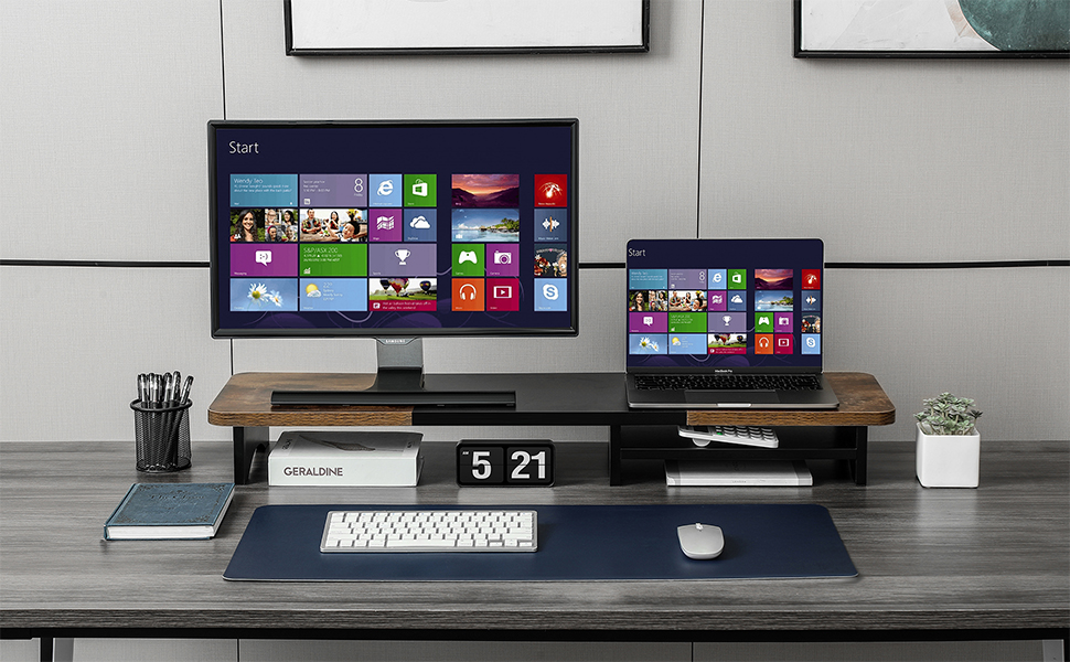 • مصمم لتحقيق الثبات - مصنوع من مادة MDF عالية الجودة، يدعم حامل الشاشة المزدوج هذا المزود بوحدة تخزين ما يصل إلى 130 رطلًا بثقة، وهو مثالي للطابعات والشاشات الكبيرة وأجهزة التلفزيون ذات الشاشات الكبيرة.
