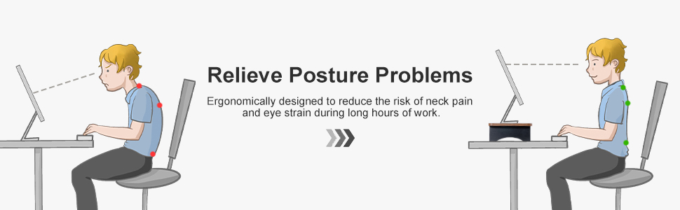 • تعزيز الإنتاجية - ارفع شاشتك إلى مستوى العين، وقلل من إجهاد الرقبة والظهر. يعزز حامل شاشة المكتب الخاص بنا المحاذاة المناسبة لتوفير الراحة. تحسين الوضع يعزز التركيز والإنتاجية. اعمل أو العب بشكل مريح، وخالي من التشتيت.