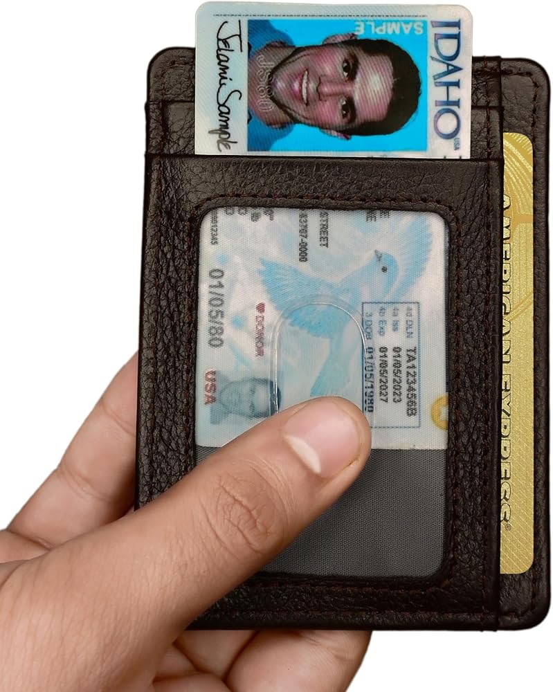 نحيف وصغير الحجم: تصميم جيب أمامي رفيع للغاية للوصول السريع إلى بطاقاتك وهويتك. 8 مساحات مع فتحتين لبطاقات الإصبع وجيب منزلق للنقود. محفظة جلدية رفيعة، بسمك 0.5 سم فقط.