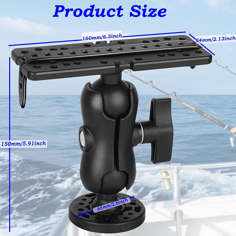 تتضمن الحزمة: 1 قطعة × قاعدة تثبيت مكتشف الأسماك (لا تشمل مكتشف الأسماك) ؛ 4 قطع × براغي؛ الحجم: قطر القاعدة: حوالي 66 مم/2.6 بوصة، الارتفاع الإجمالي: حوالي 150 مم/5.91 بوصة، اللوحة المسطحة العلوية: حوالي 160 × 54 مم/6.3 × 2.13 بوصة (طول × عرض)