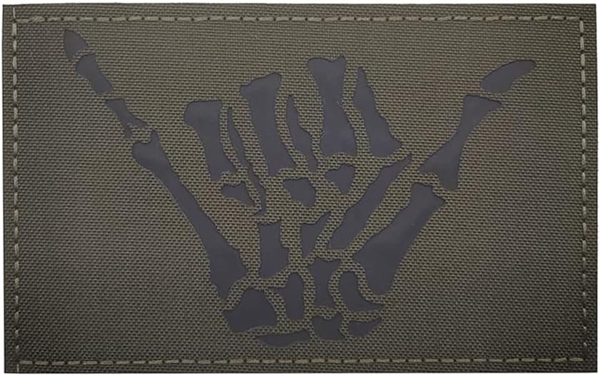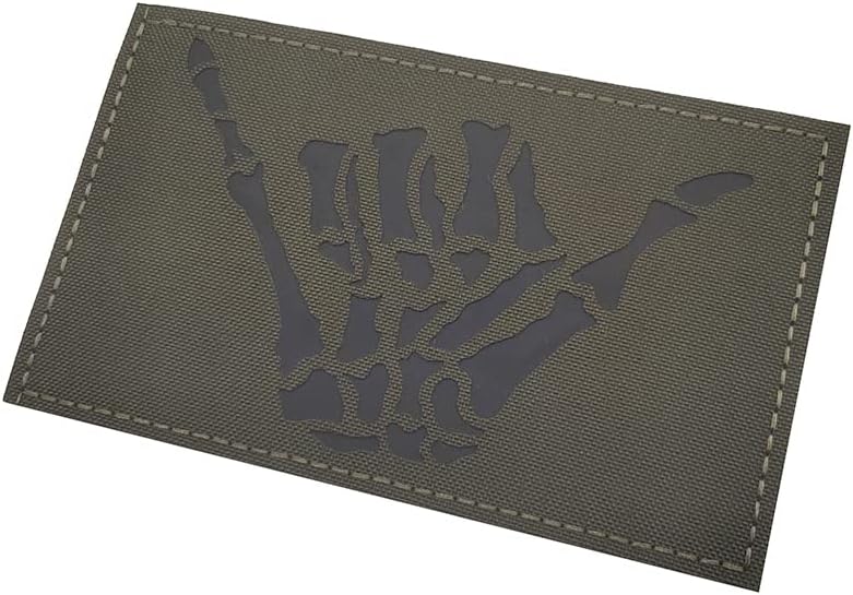 5 × 3 بوصة كبيرة باللون الأخضر بالأشعة تحت الحمراء IR جمجمة هيكل عظمي للإصبع الأوسط تصحيح سترة تكتيكية رقعة تثبيت بخطاف دعم (5 عرض × 3 بوصة ارتفاع) (أخضر)