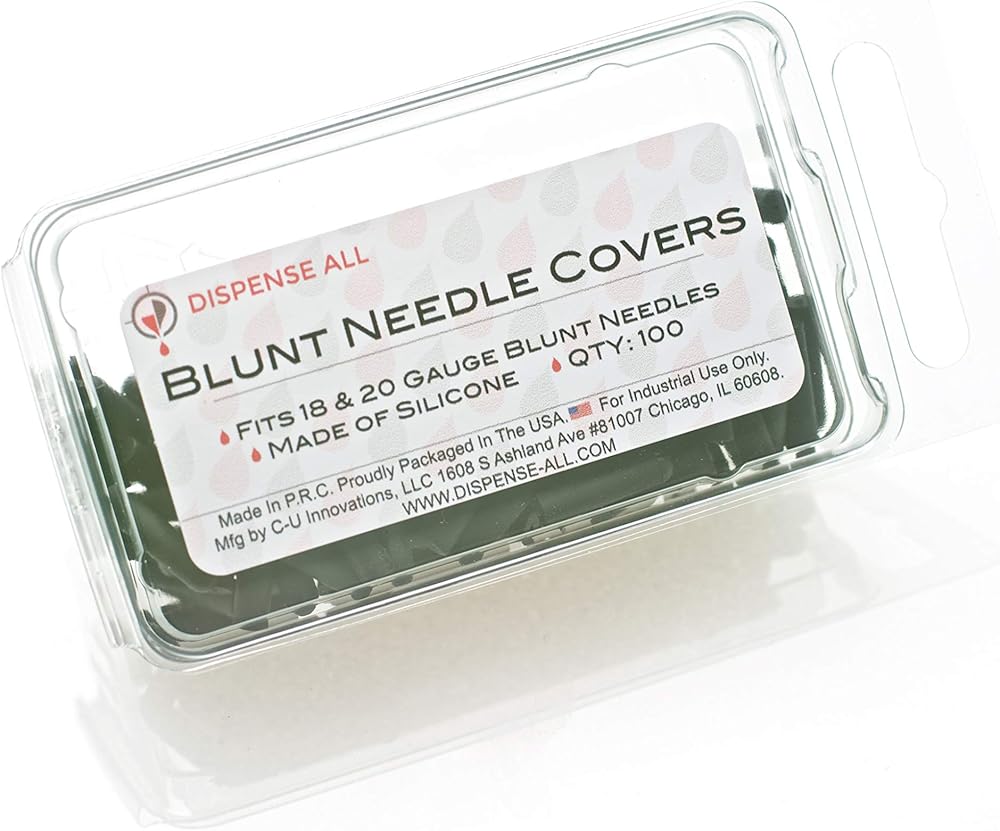 Made of durable silicone, these Dispense All brand blunt needle covers are perfect for sealing off blunt needle ends. Simply slide the cover over the blunt needle to make a liquid tight seal. These are made specifically for 18 and 20 gauge blunt needles 0.5 inches and longer. Please note that silicone is gas permeable so while it will seal a blunt needle, it will let air in overtime. Contains 50 blunt needle covers.