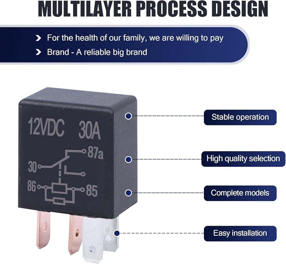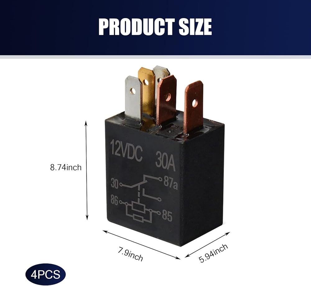 Specifications: You will receive 4 12V 30A 5-pin relay. The 30A 12V relay can be used to control component circuits in vehicles with high current loads, such as fuel pumps and cooling fans. If you have any questions about product use, please feel free to contact us.