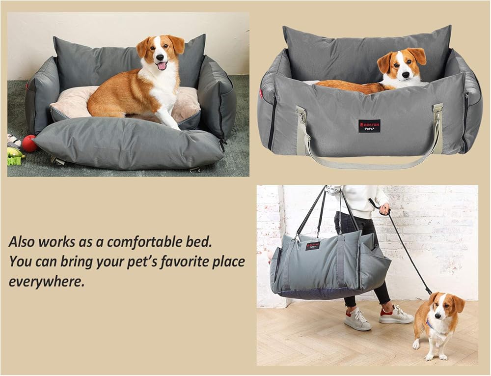 في المنزل أو على عجلة القيادة. عندما تكون في المنزل، يمكنك فك سحاب الجوانب الأربعة لجعله مثل السرير المسطح. خذ السرير/المقعد المفضل لحيوانك الأليف إلى أي مكان تذهب إليه.