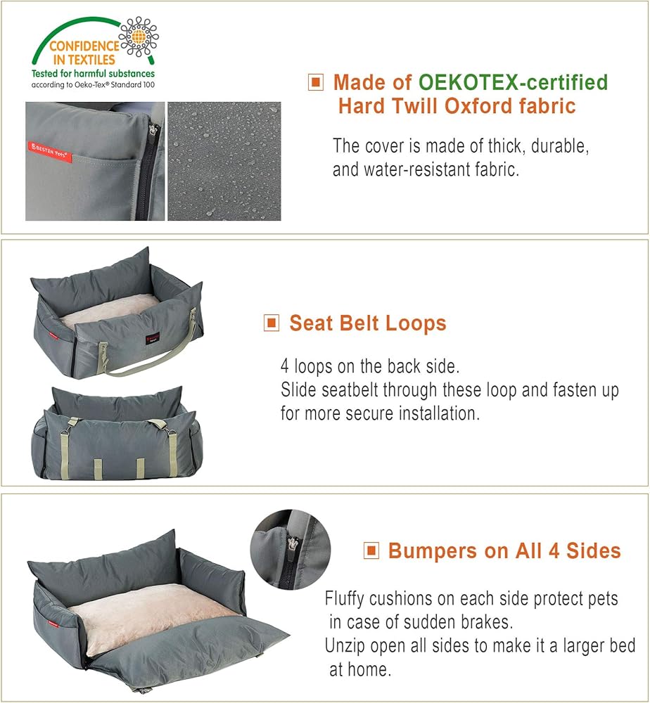يجب أن يكون للسفر الآمن. سيشعر حيوانك الأليف بأمان أكبر في هذا المقعد المعزز. تعمل الوسائد من الجوانب الأربعة كمصد في حالة التوقف المفاجئ. يحتوي المقعد المعزز على حزامي أمان لربطهما بطوق الحيوان الأليف، مما يمنع حيوانك الأليف من إزعاجك أثناء القيادة. سوف يستمتع صديقك ذو الفراء حتى برحلة طويلة