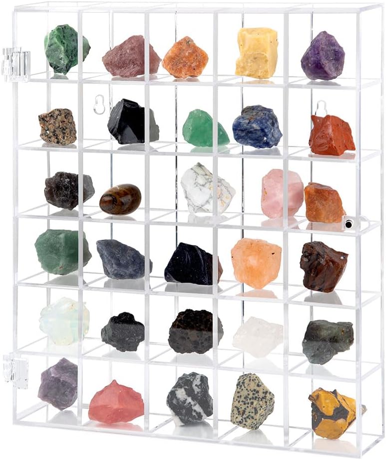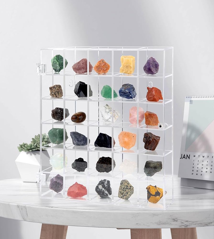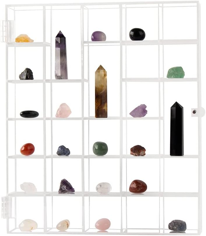 Clear Rock Display Case Shell Adjustable Acrylic Collection Box Mineral Crystal Display Case Arrowhead Stones Storage Collectibles Holder Organizer Showcase Shelves with Lid